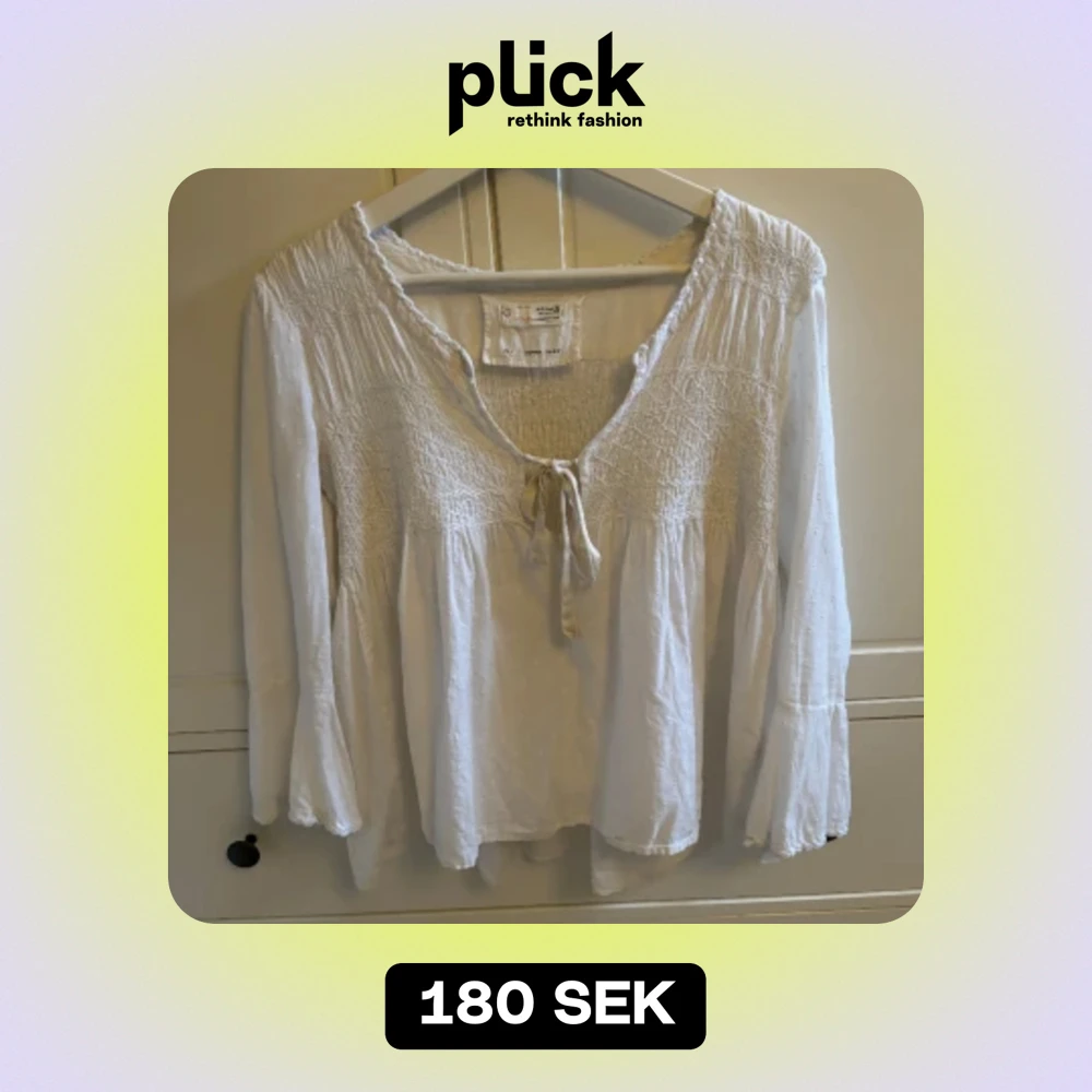 Jättesöt vit odd Molly blus!! Den har lite slitningar vid banden, bandet är trasigt på ena sidan och håller på att gå sönder, men det går säkert att sy!! (kolla andra bilden).