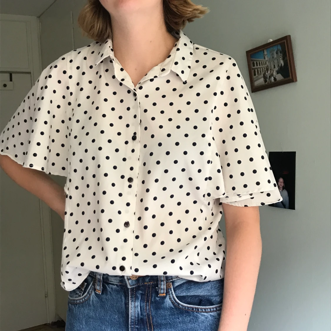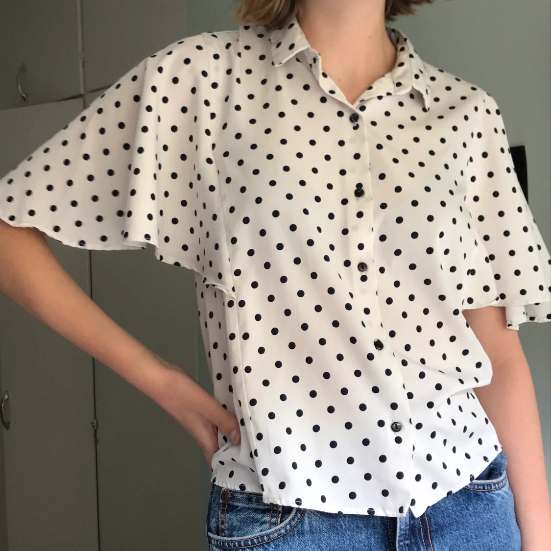 Gullig blus med mörkblåa nästan svarta prickar! Använd ett fåtal gånger! Mötes upp i gbg! Köparen står för frakt :)