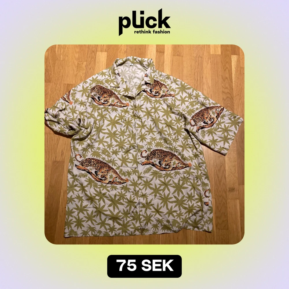 Blus med leoparder Armarna går rulla upp med sleifar Lappen med material är borta men det är inte bara bomull Står 42 men är nog mer 40