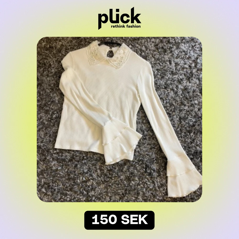 Tajt blus med långa ärmar med volanger vid händerna. Kragen är full med pärlor vilket ger den perfekta looken. Superfin och dressig!