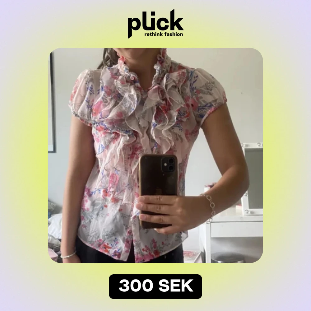Så fin blommig mesh blus från saint tropes med volanger, aldrig använd. Priset kan diskusteras