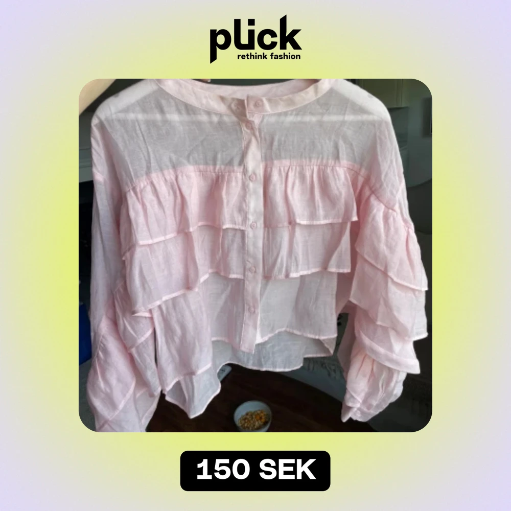 JĂ€ttecool rosa blus, med volanger lĂ€ngs framsidan och ut min Ă€rmarnaâš