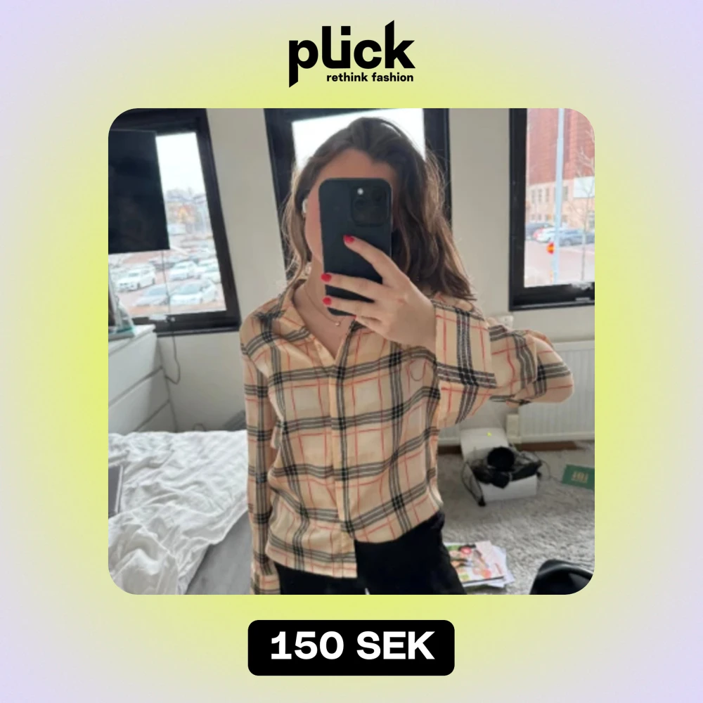 Rutig blus från pieces i storlek S, produkten har använts men är i bra skick!