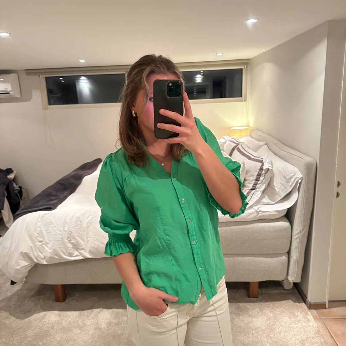Grön blus med knappar