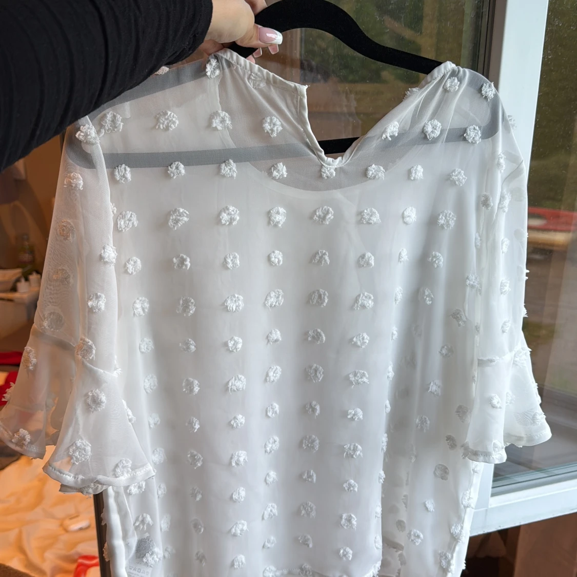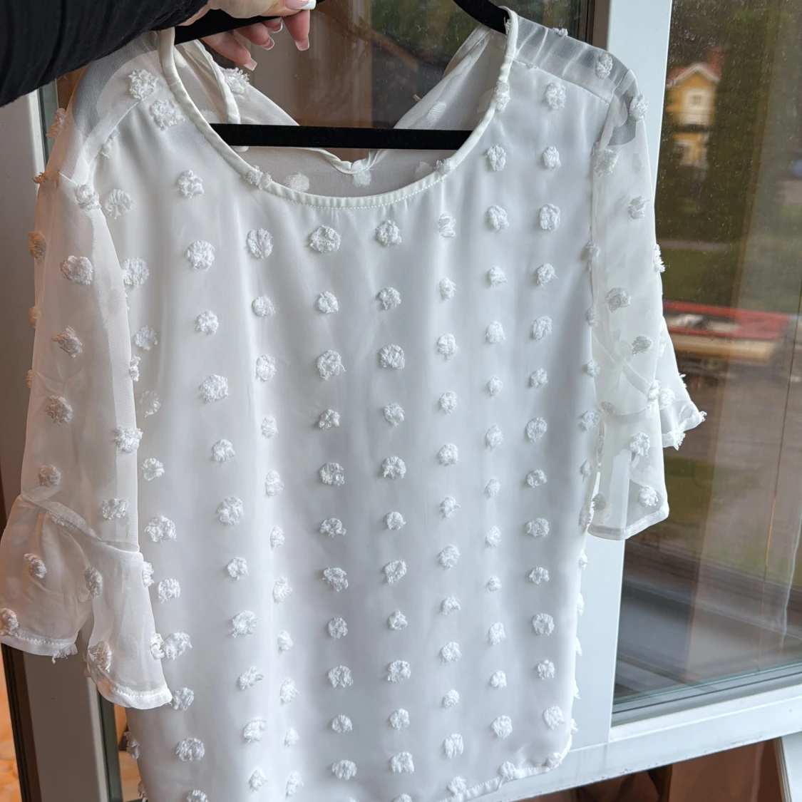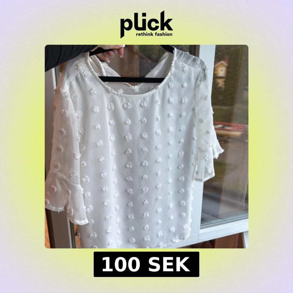 Vit blus med volangärm och prickar