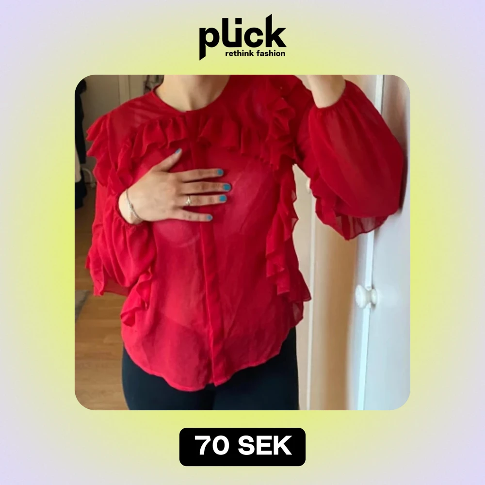 så fin blus som tyvärr aldrig kommer till användning. genomskinligt tyg, volanger