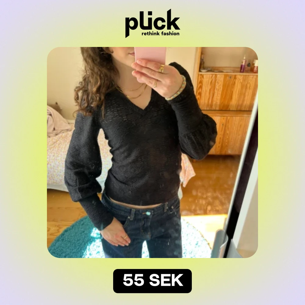 Så cool svart blus med puffärmar från pieces, i ett broderat/spets tyg💖 Syns tydligare på bilderna!🙈