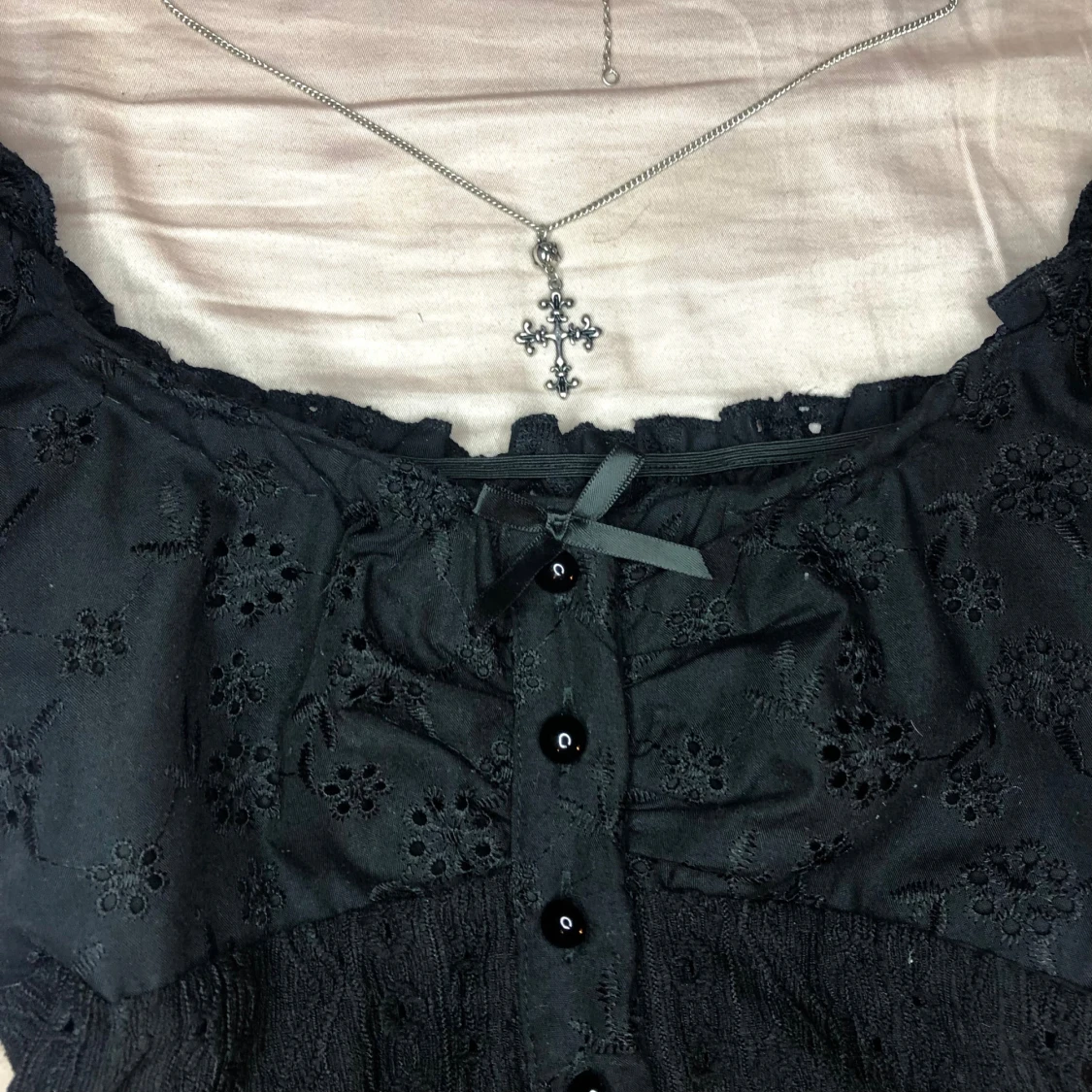 Jättevacker svart blus med en liten rosett på framsidan, knappt använd🖤 Storlek S