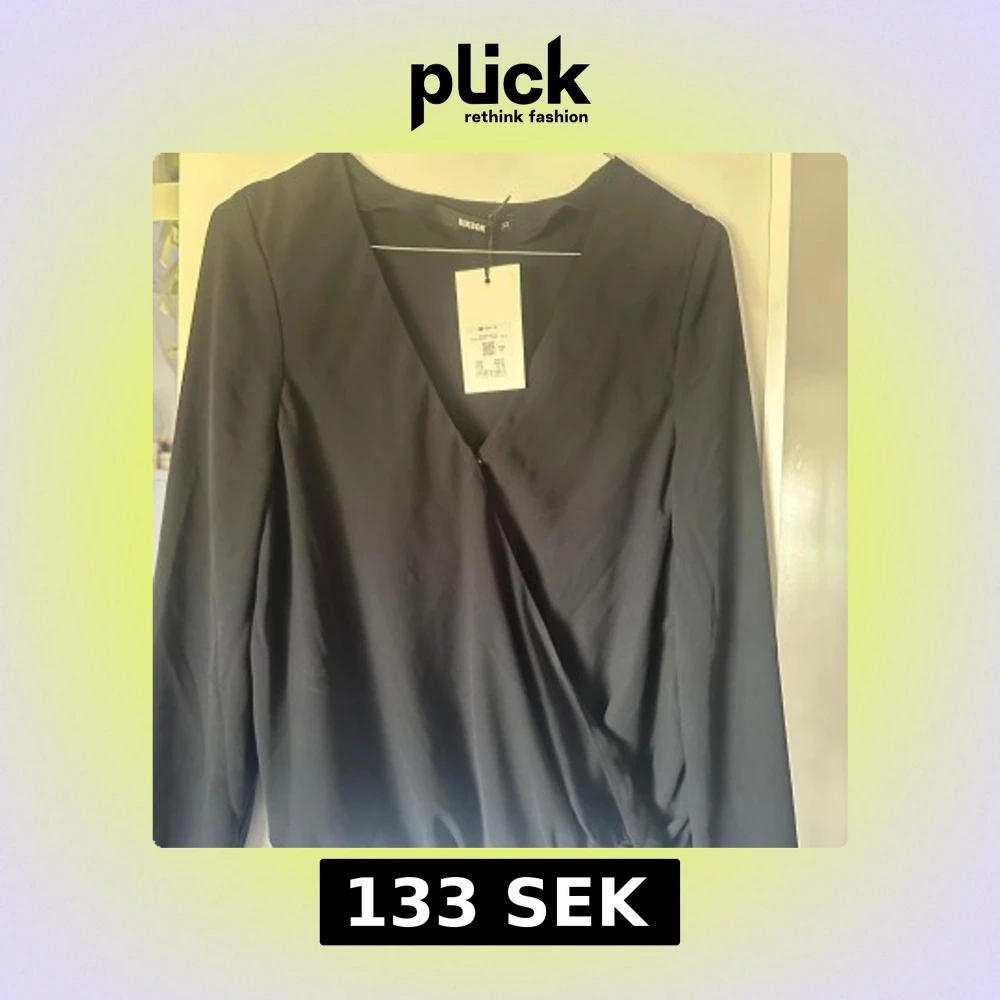 Snygg svart omlottopp från Bik Bok med v-ringning och långa ärmar. Aldrig använd. Prislappen finns kvar. Nypris 359.