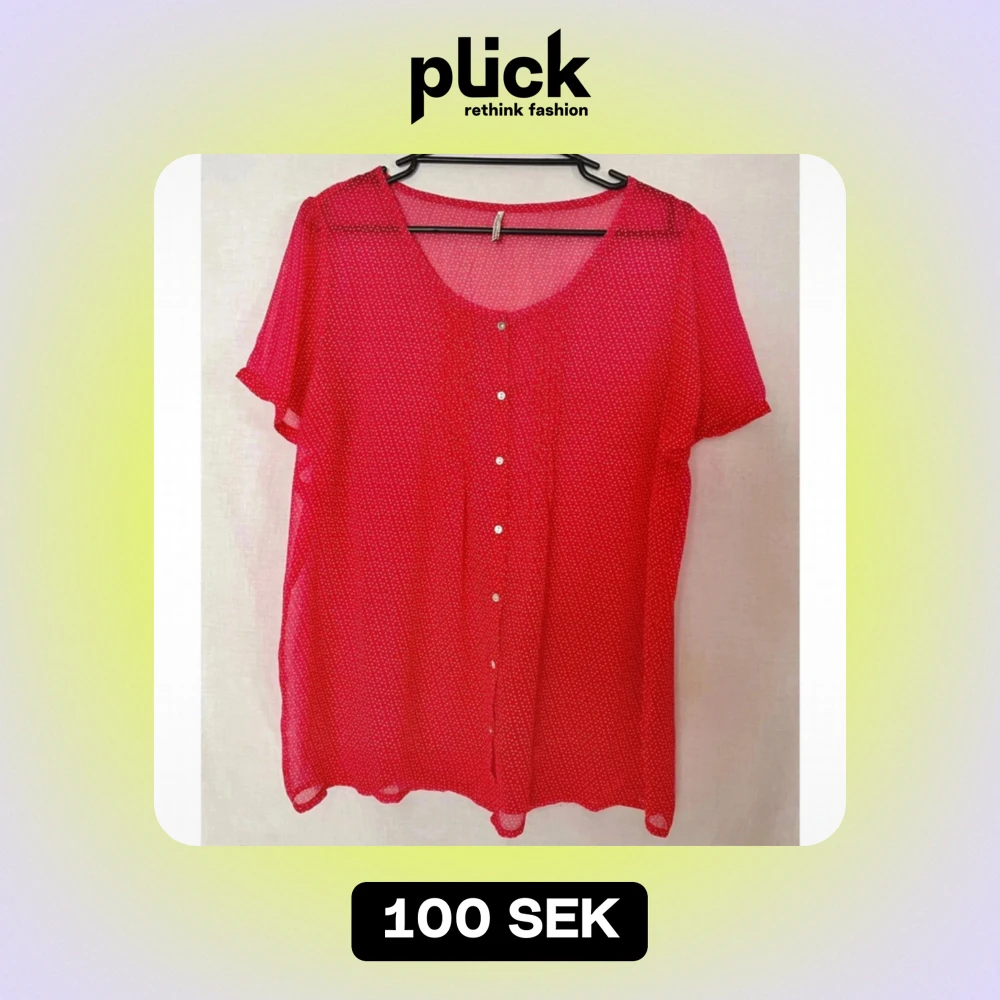 Röd tunn blus från Soyaconcept med knappar fram i storlek M. Längd 68 cm Bystmått 54 x 2 cm