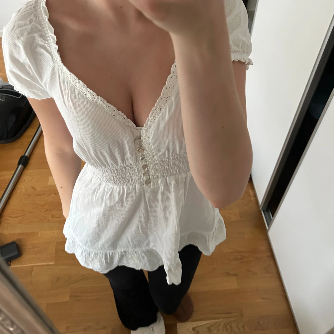 Intressekoll på denna sjukt fina blusen från By Timo i storlek XS🤍SÄLJER ENDAST VID BRA PRIS (Köpt för 1800 kr)