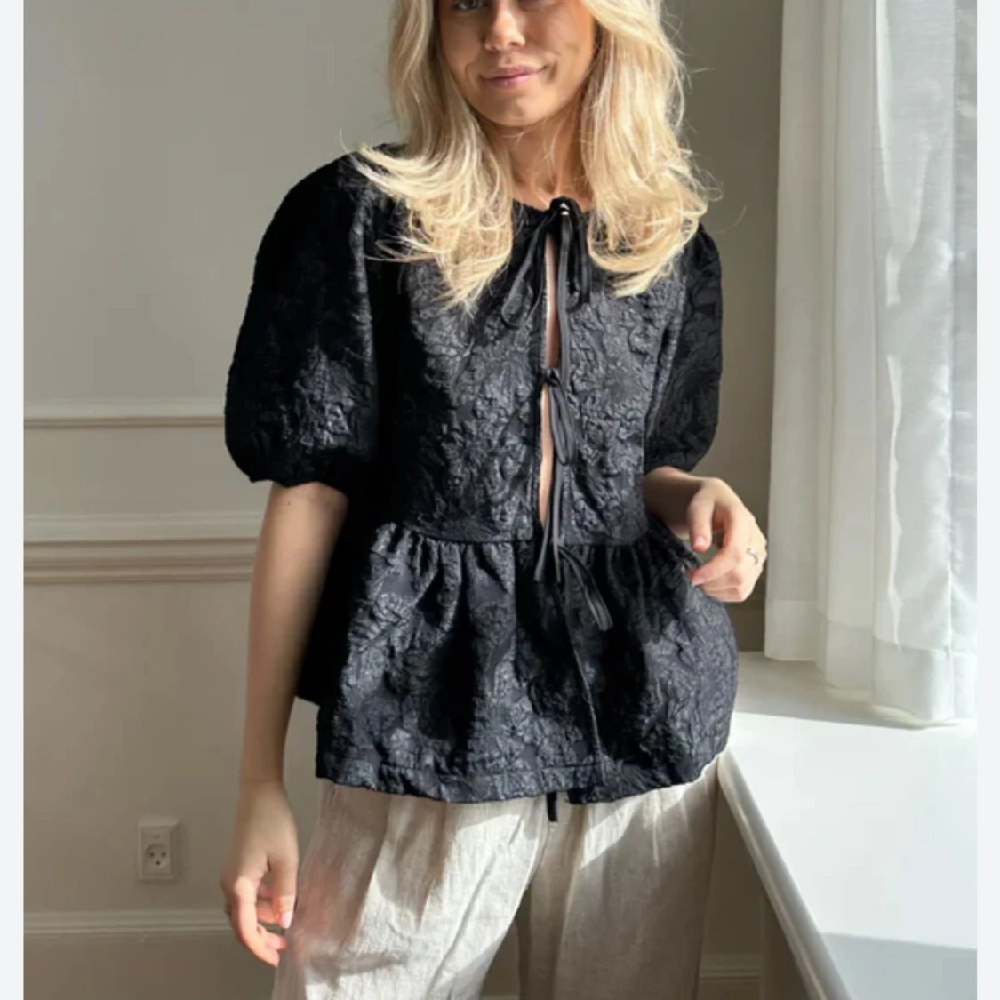 Svart blus i storlek S Går att knytning fram och bak Nypris: 750kr