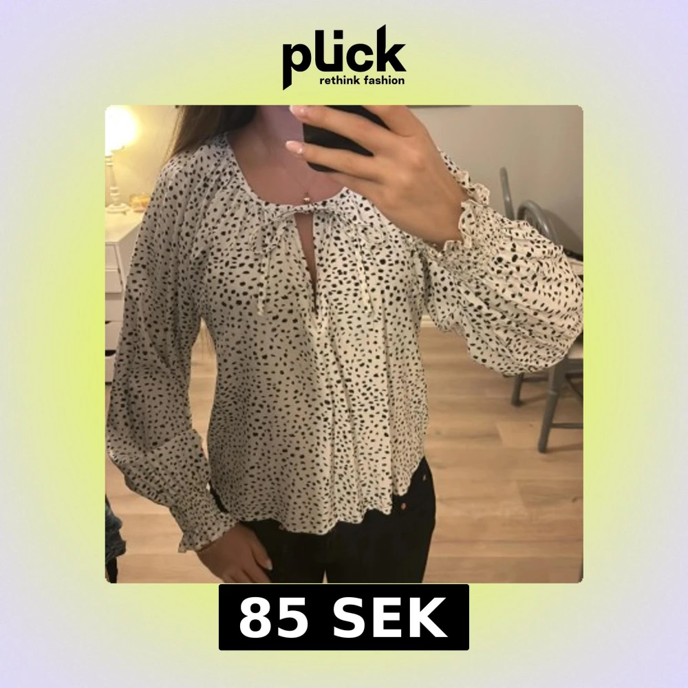 Säljer denna jättefina svart prickiga blusen från Lindex då den inte längre kommer till användning 🙃 Man kan knyta den där uppe eller välja att inte ha den knuten, Storlek XS men passar även S