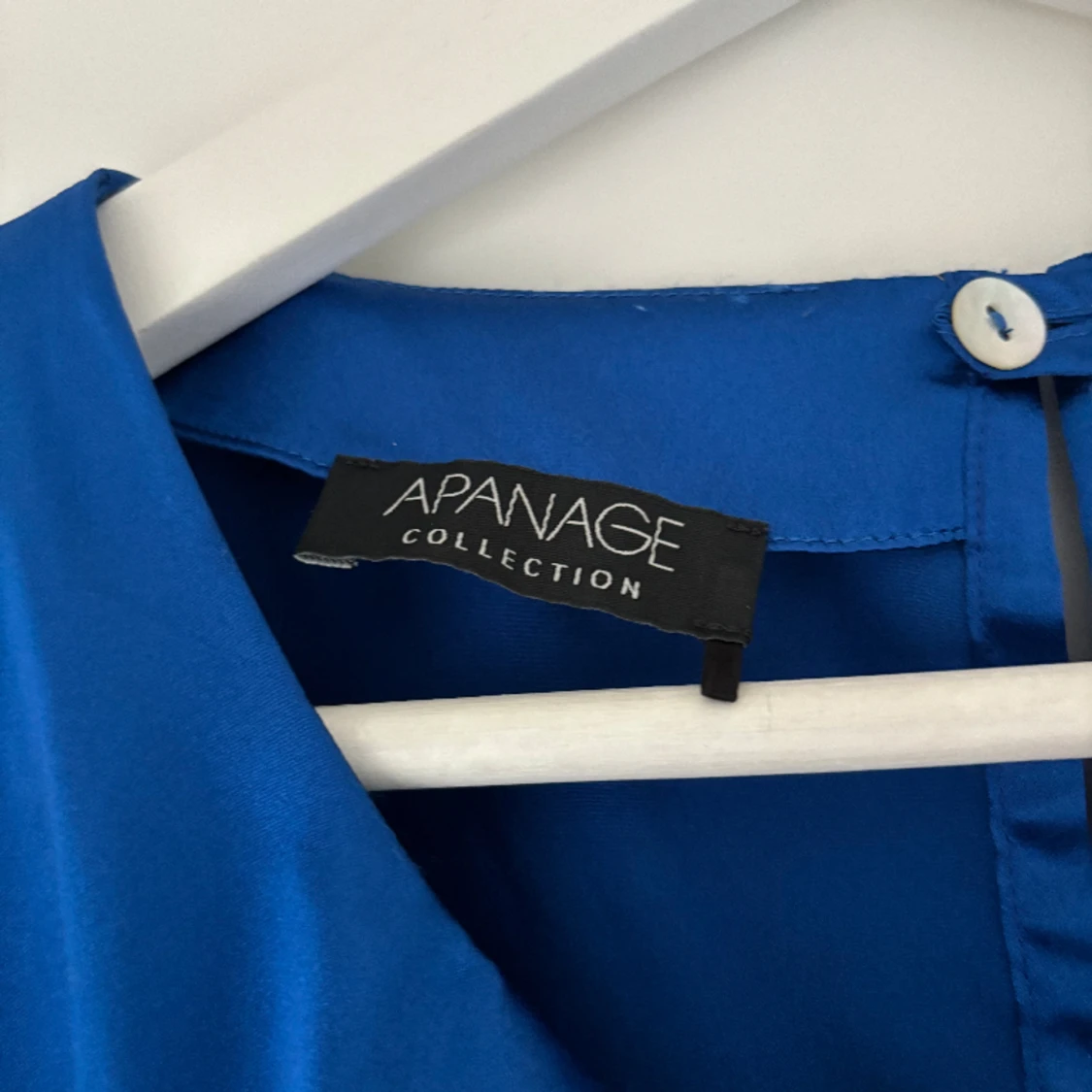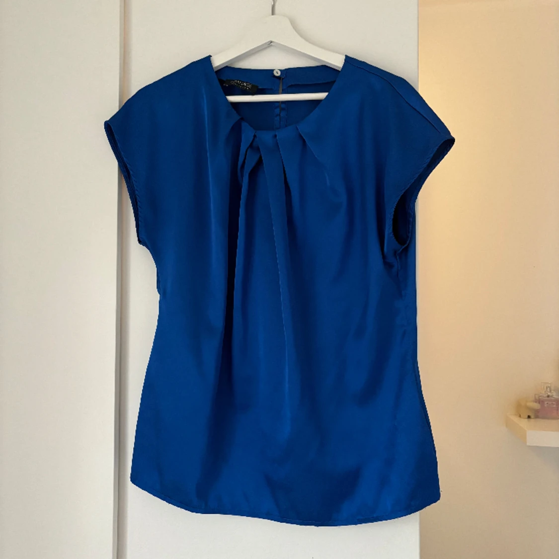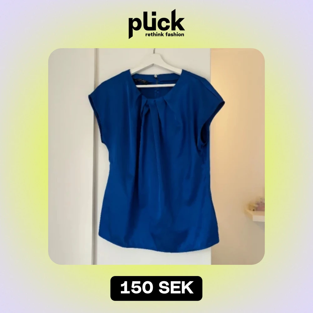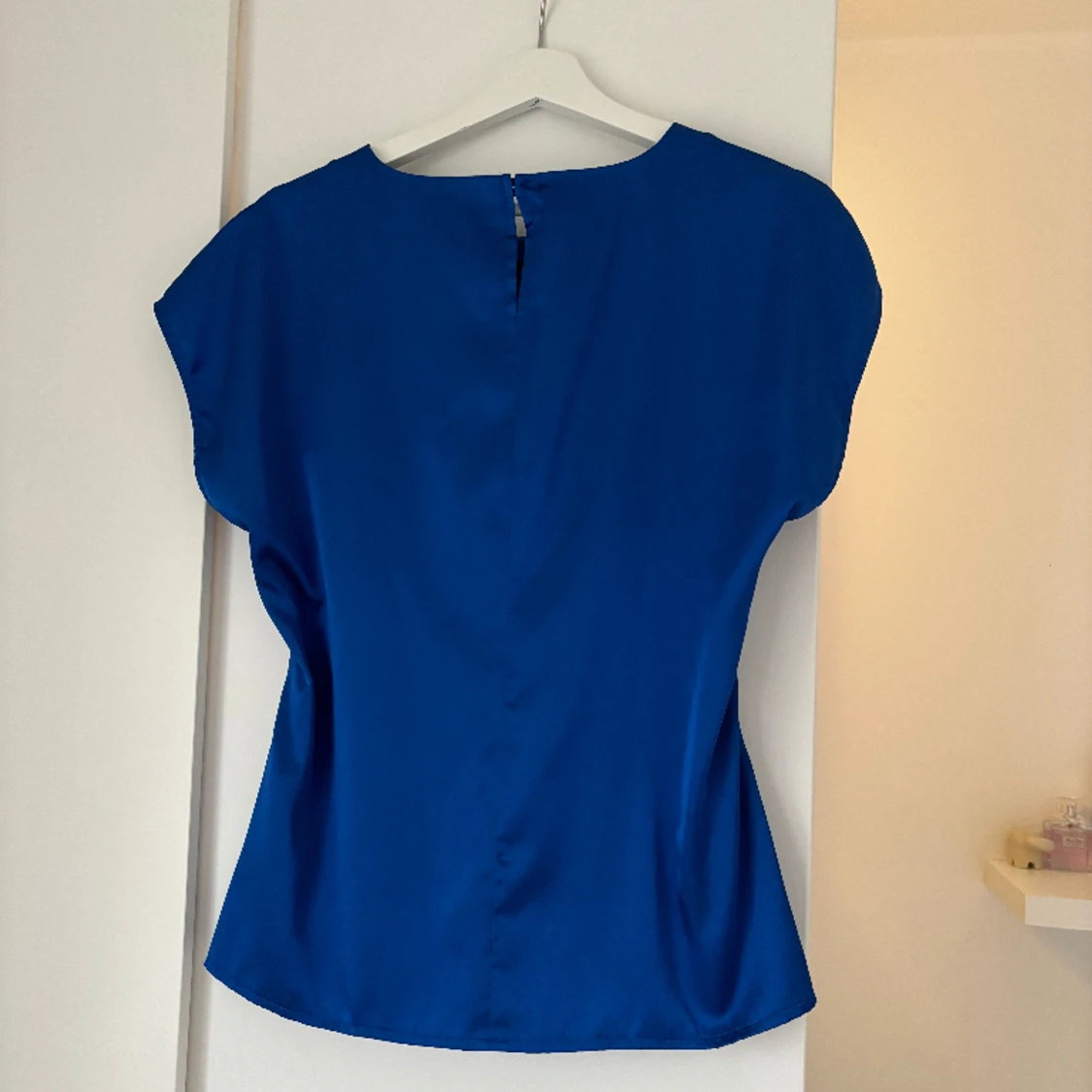 Blå blus i sidenliknande material. Köpt second hand, aldrig använd av mig. Storlek M