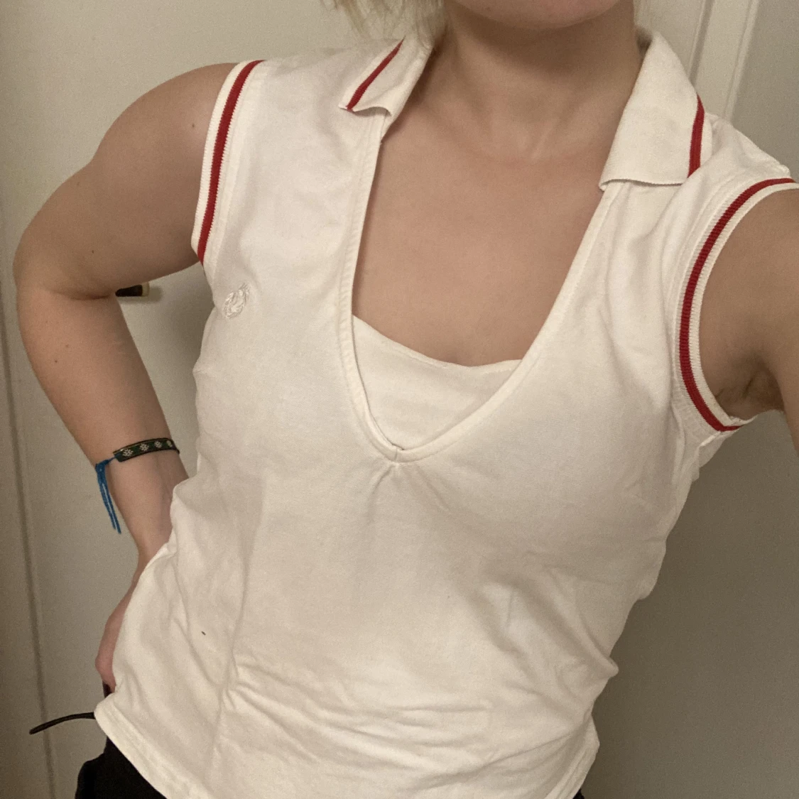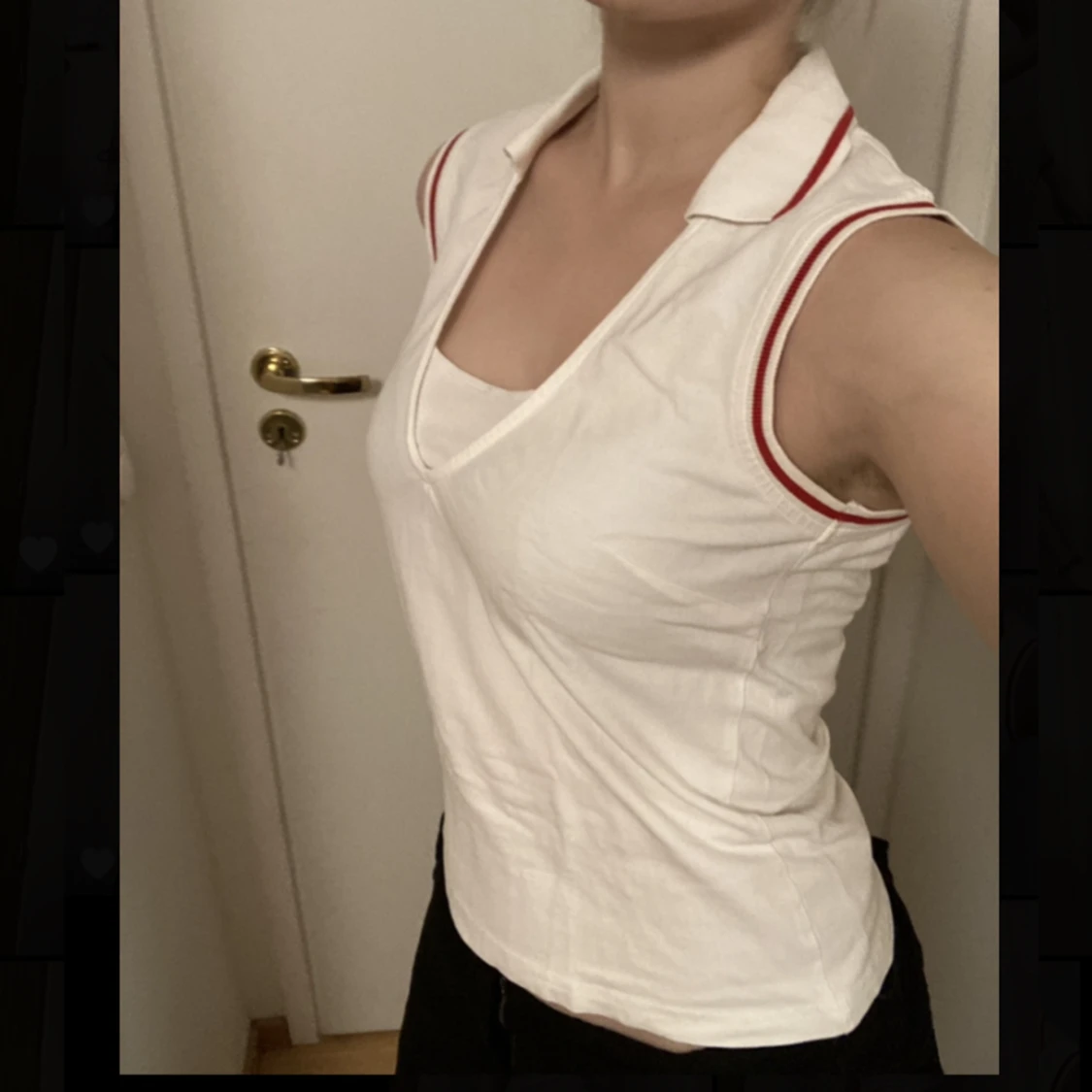 En vit blus med röda detaljer ❤️ Den är något ostruken på bilden 🙈 Pris kan diskuteras 🙌