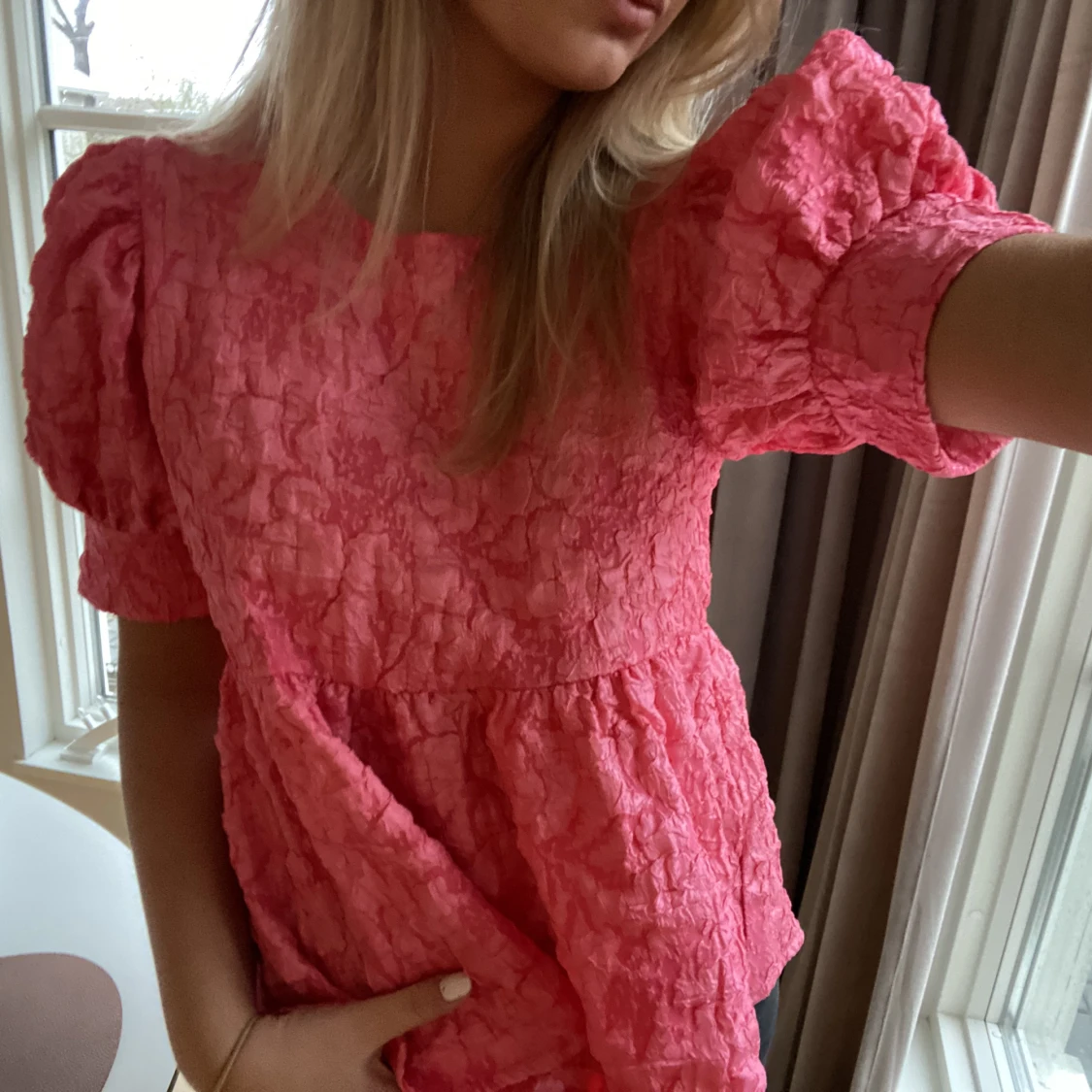 Söt rosa blus med textur. Köpt för ca 1 år sedan men aldrig använd. Ordinariepris: 450kr Frakt 66kr