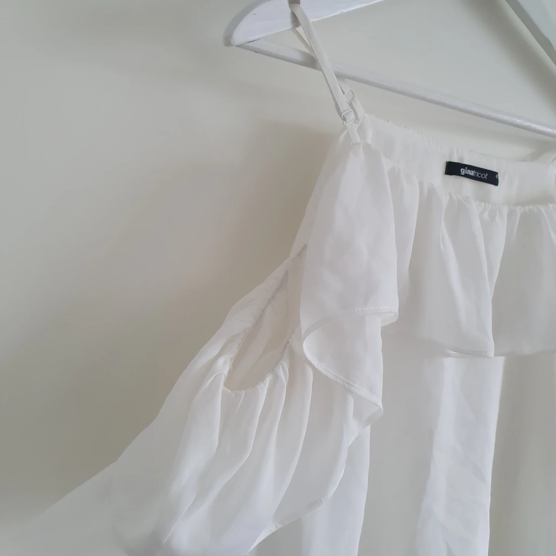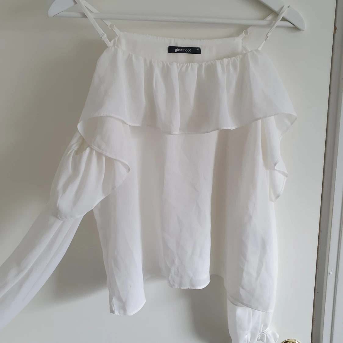 Off-shoulder med ärmar i chiffon-material. Storlek 42