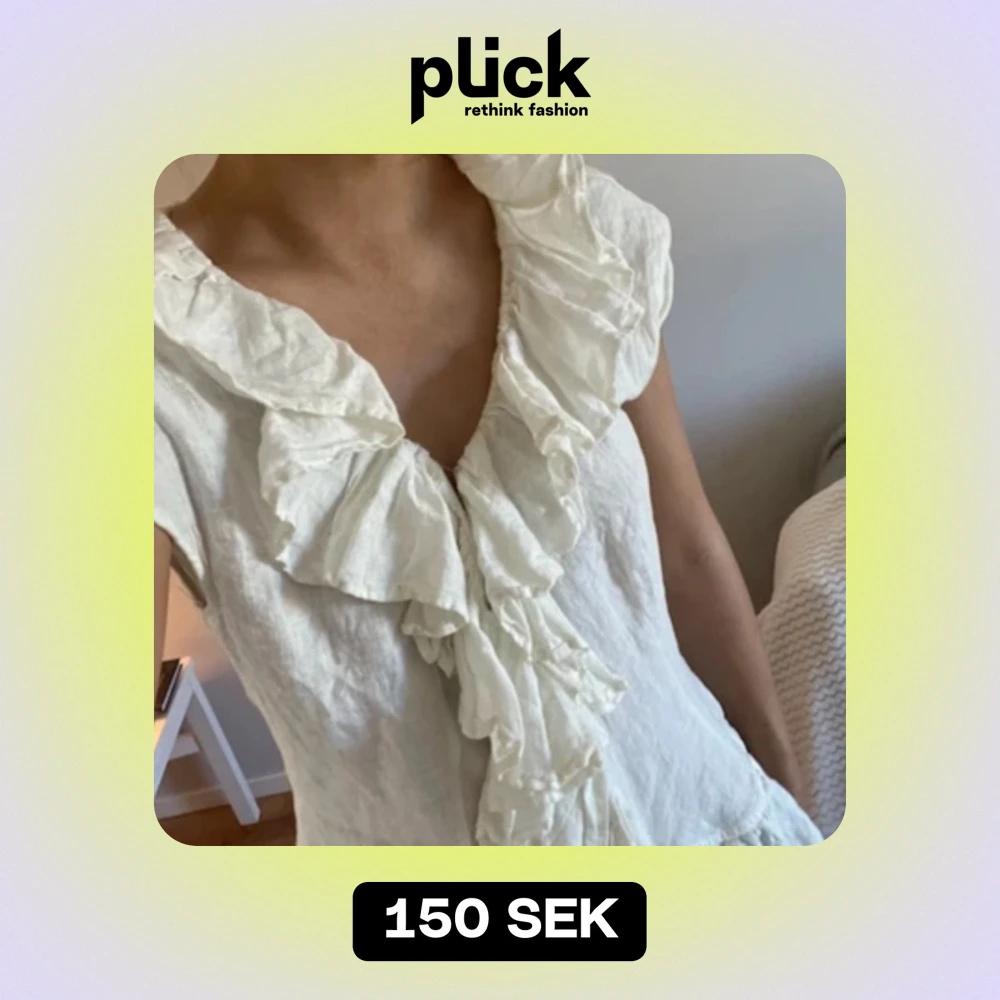 Så söt vit blus i linnetyg med volanger! Perfekt till sommaren💗😊Toppen skick! Storlek 44 men sitter löst på mig som har 34/xs. Hör av dig vid frågor🫶🏼