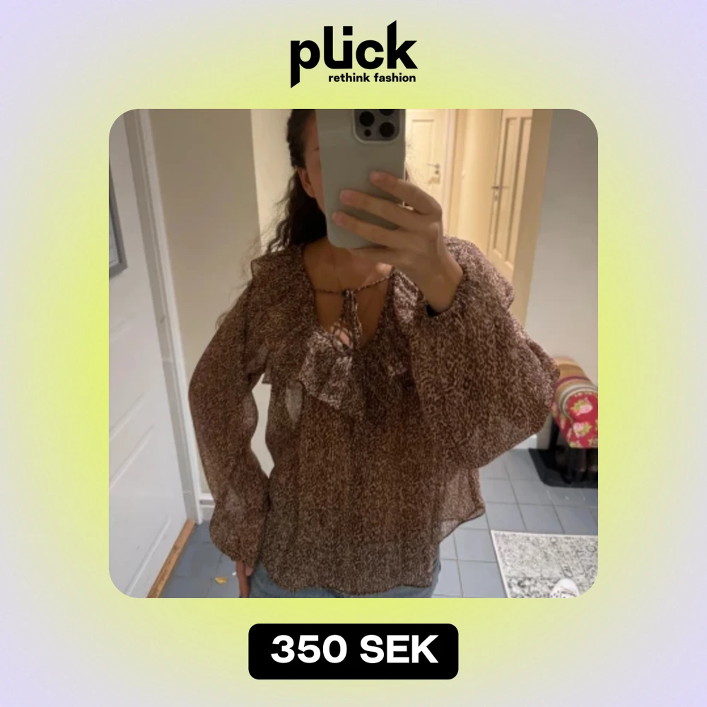 Jätte fin leopard mönstrad blus med volanger i bra skick