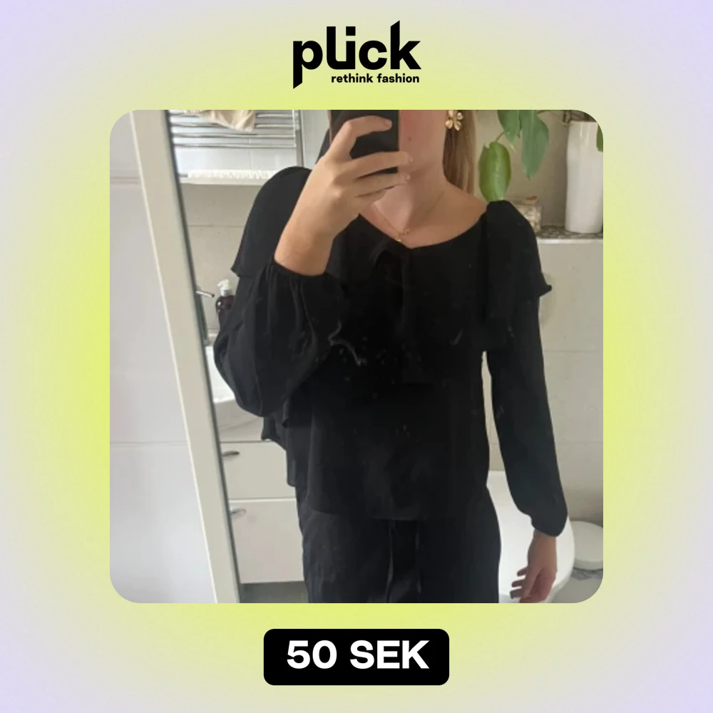 En blus från gina jag haft väldigt länge som jag tyvärr växt ur. Jättefin med volanger och kan användas vid många olika tillfällen och går o klä upp och ner☺️💕 OBS. Har lite ljusa fläckar längst ner och en söm som gått upp på insidan. Syns ej mycket