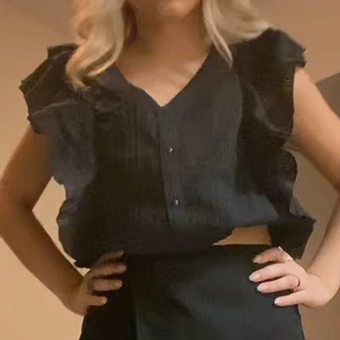 En otroligt snygg blus i storlek S använd en gång! (Vikt upp den på bilderna)