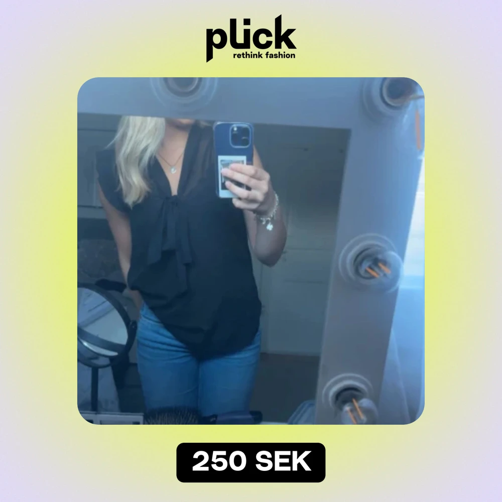 Jätte fin svart blus/ linne, är i ett genomskinligt material men passar snyggt med ett svart linne under (har det på bilden) passar S/M
