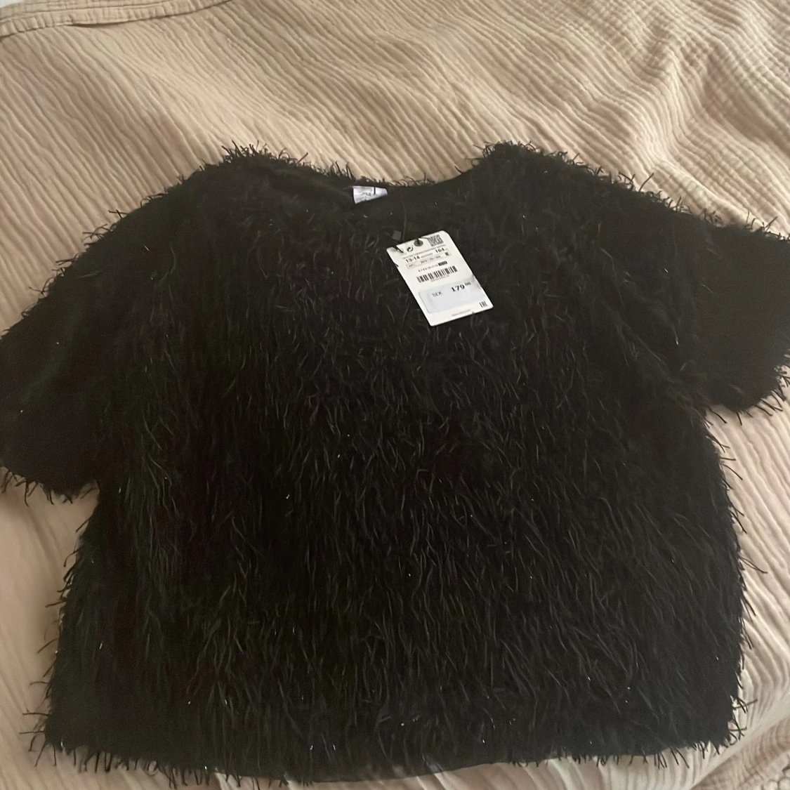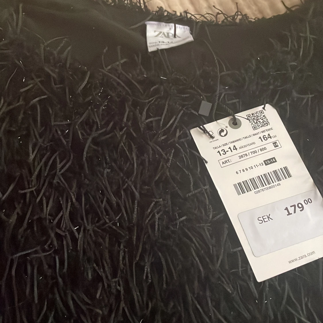 Säljer min snygga party tröja från zara barn! Helt oanvänd med lapp kvar i storlek 13-14 i svart den är svart och lite glittrig❤️