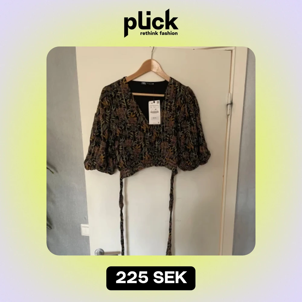 Kort topp från Zara med prislapp. Puffärm och snörning i midjan