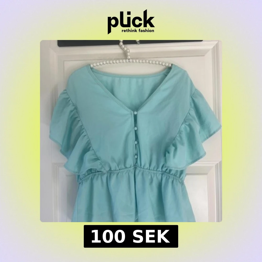 Supersöt ljusblå blus med v-ringning, volangärmar och knappar framtill. Blusen har en markerad midja med resår och är tillverkad i mjukt bomullstyg. Perfekt för dig som gillar romantiska detaljer och en chill vibe.