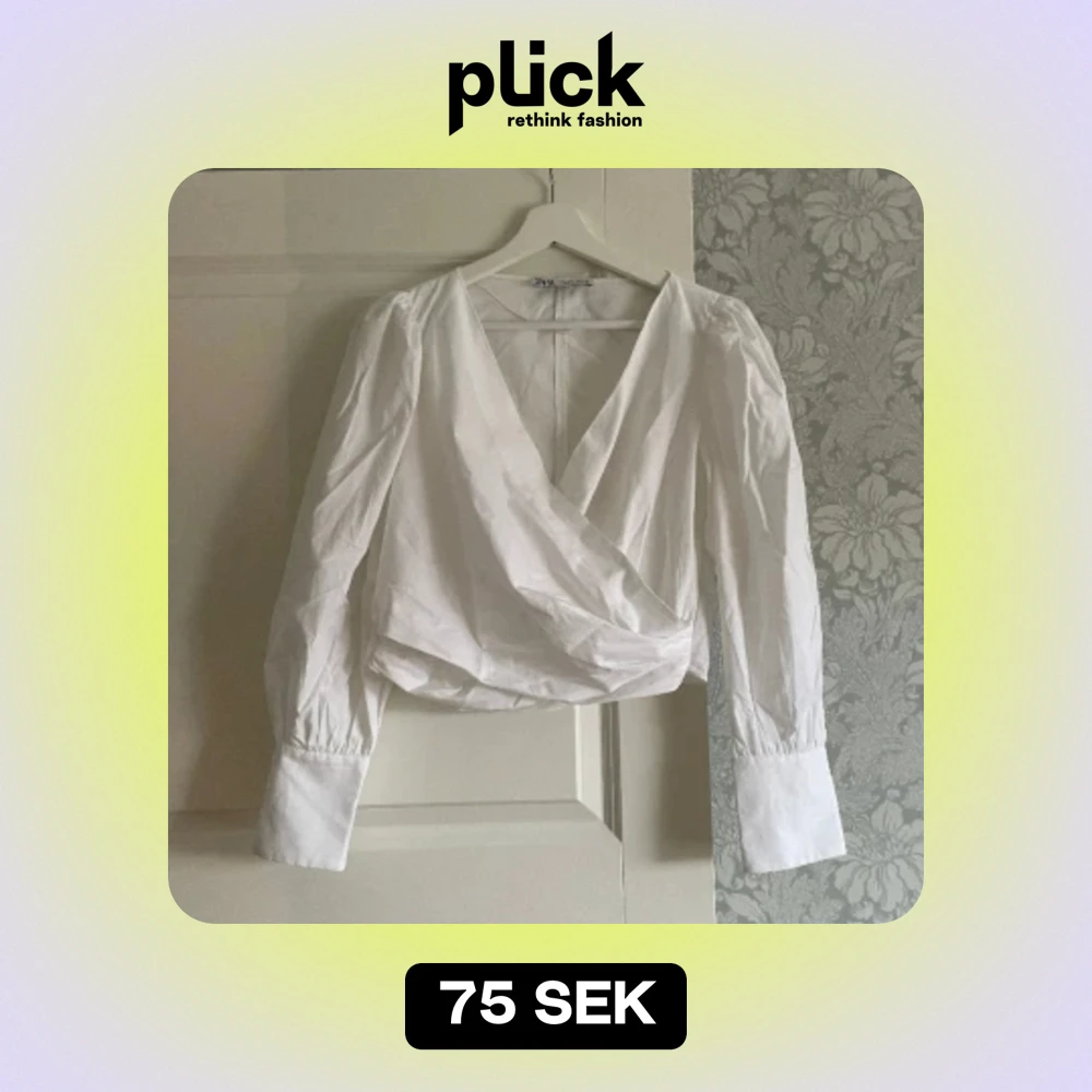 En jättefin vit blus från Zara✨ Den är omlott och i en croppd modell. Försluts med en dragkedja i midjan för perfekt passform. Säljer då den tyvärr inte kommit till användning.
