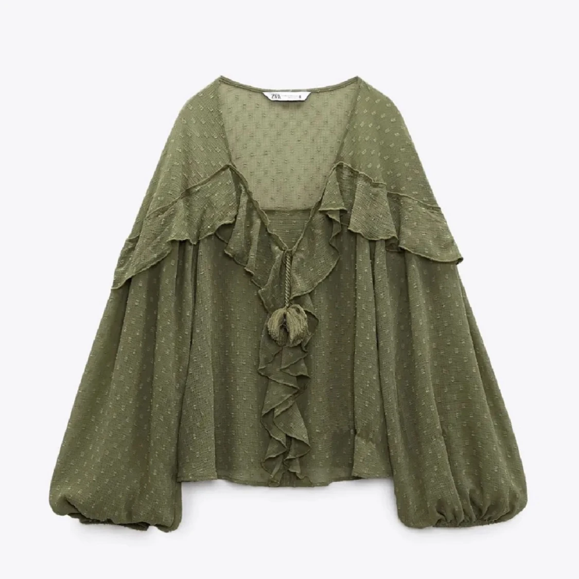 SÖKER denna gröna blusen från Zara. Jag söker den i storlek XS och den får kosta 300 kr som mest💘💘