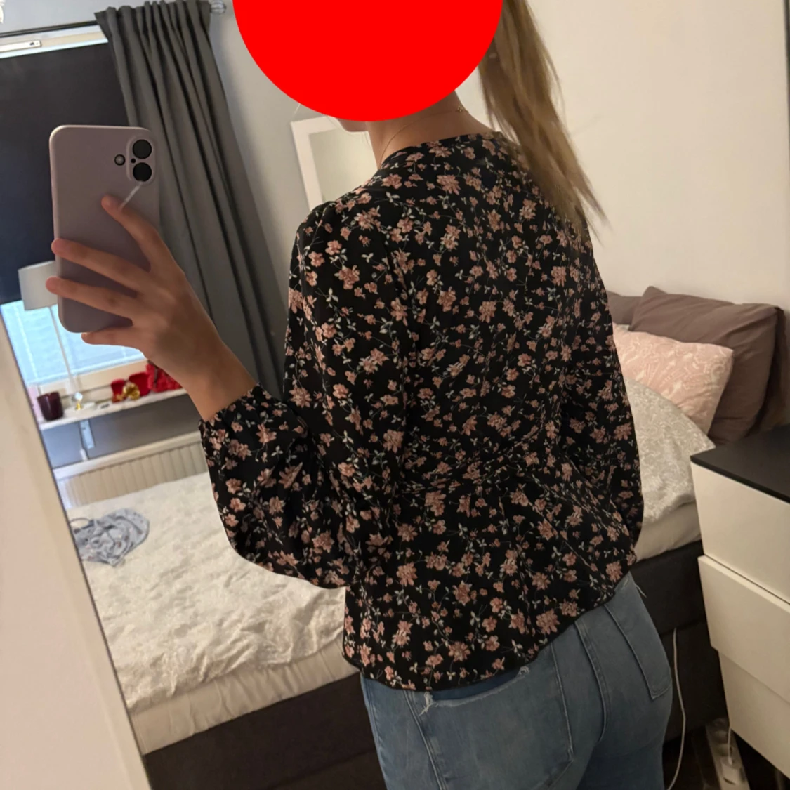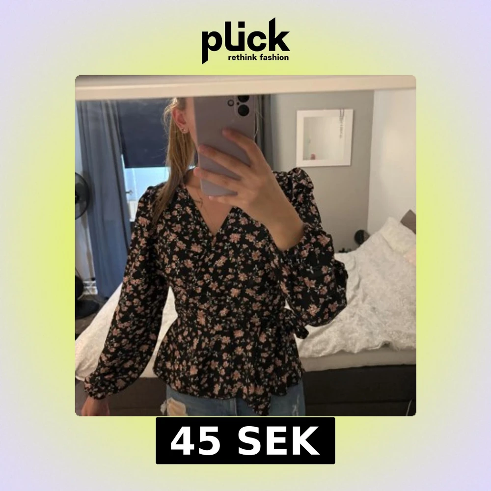 Säljer en svart blommig omlottblus med rosa och beige blommor. Blusen har v-ringning, långa puffärmar med resår vid ärmslut och ett snyggt knyt i midjan. Materialet känns lätt och flowy, perfekt till jeans eller kjol. Fräscht och trendigt mönster!