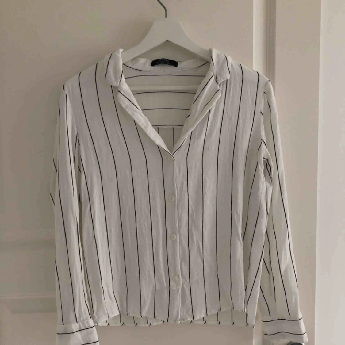 Fin randig blus från märket Bershka, vit med svarta ränder. I helt okej skick :) Frakt betalas av köparen.
