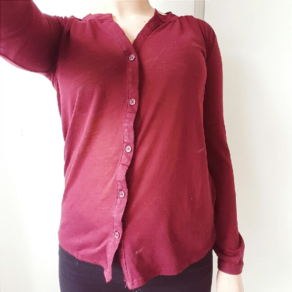 Vinröd blus/skjorta från bikbok. Fraktar endast under 100:- Tar gärna emot betalningar via Swish 🌞