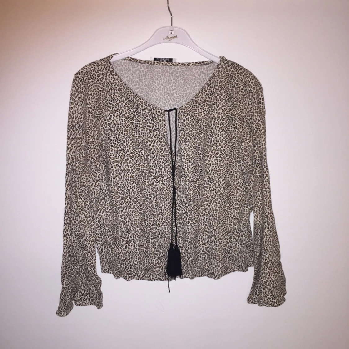 En fin leopardmönstrad blus i storlek XS med snörning fram (tofsar) och flare armar. Mycket bra skick 🌟