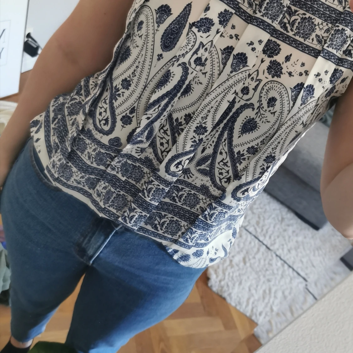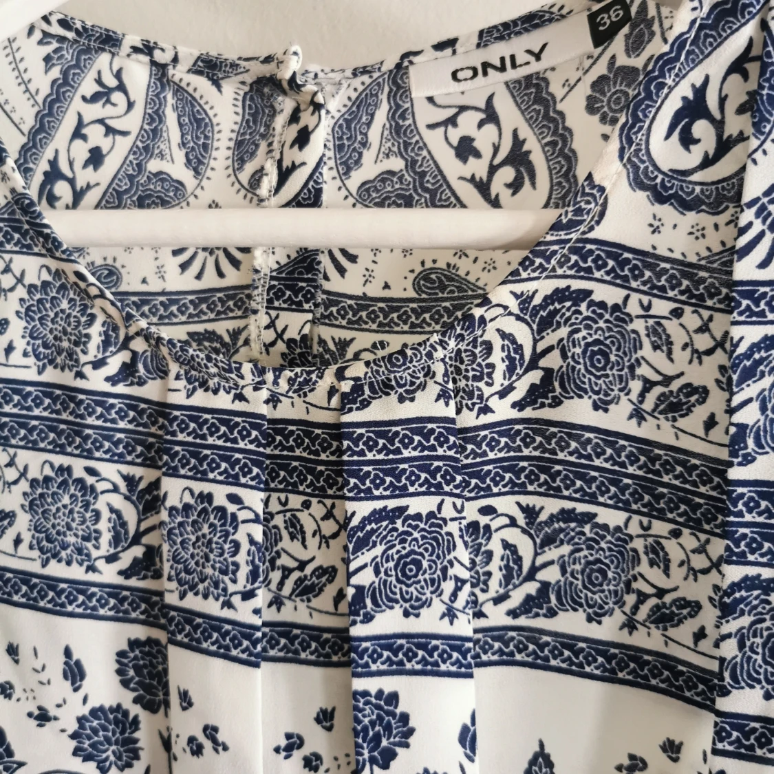 Fin vit blus med blå detaljer, från Only. Knappar längsmed hela ryggen. Köparen står för frakt.