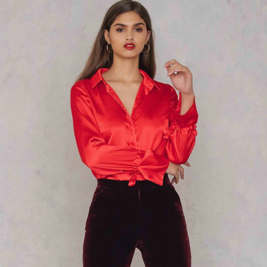 Säljer en röd blus från NA-KD i storlek S. Nypris: 399kr. Aldrig använd, prislappen hänger kvar. 200kr. Finns att hämta i Norrköping eller så tillkommer fraktkostnad på 30kr. Vid intresse kan fler bilder skickas! En lånad bild från hemsidan.