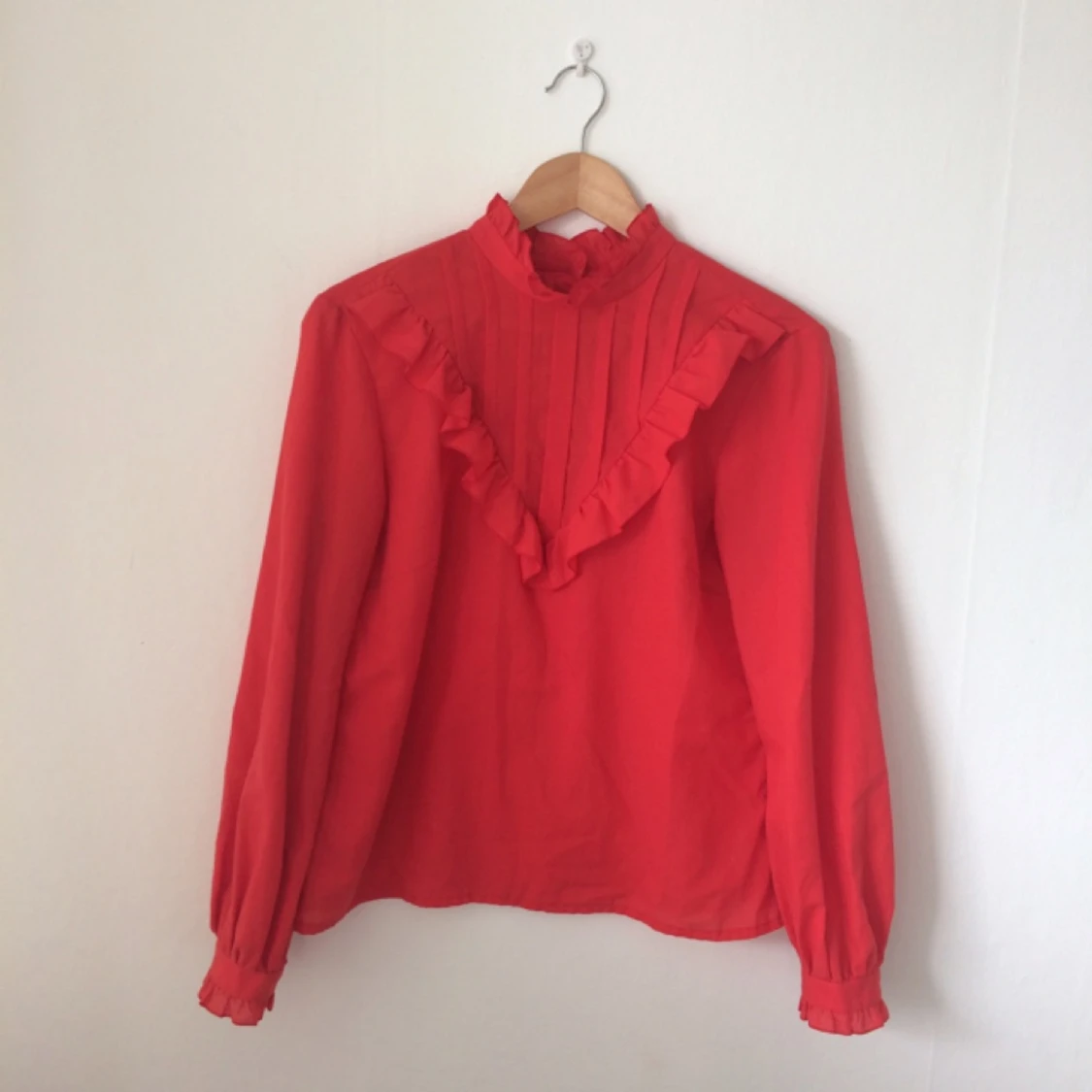 Svinfin röd blus hittad 2hand. Lite nopprig på vissa ställen, men inget som syns väl.