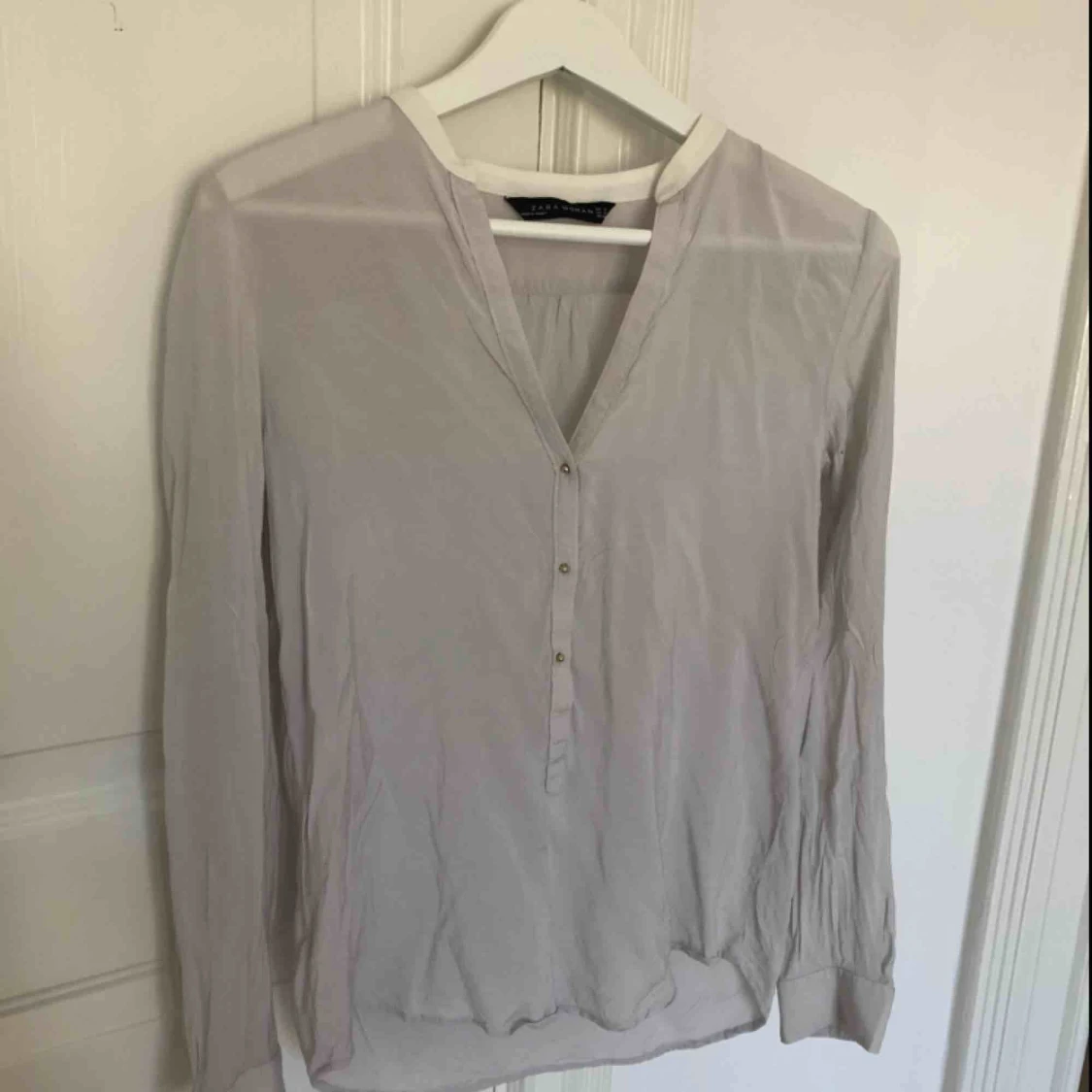 Ljusgrå blus från Zara. Guldknappar. Sparsamt använd. Storlek medium.