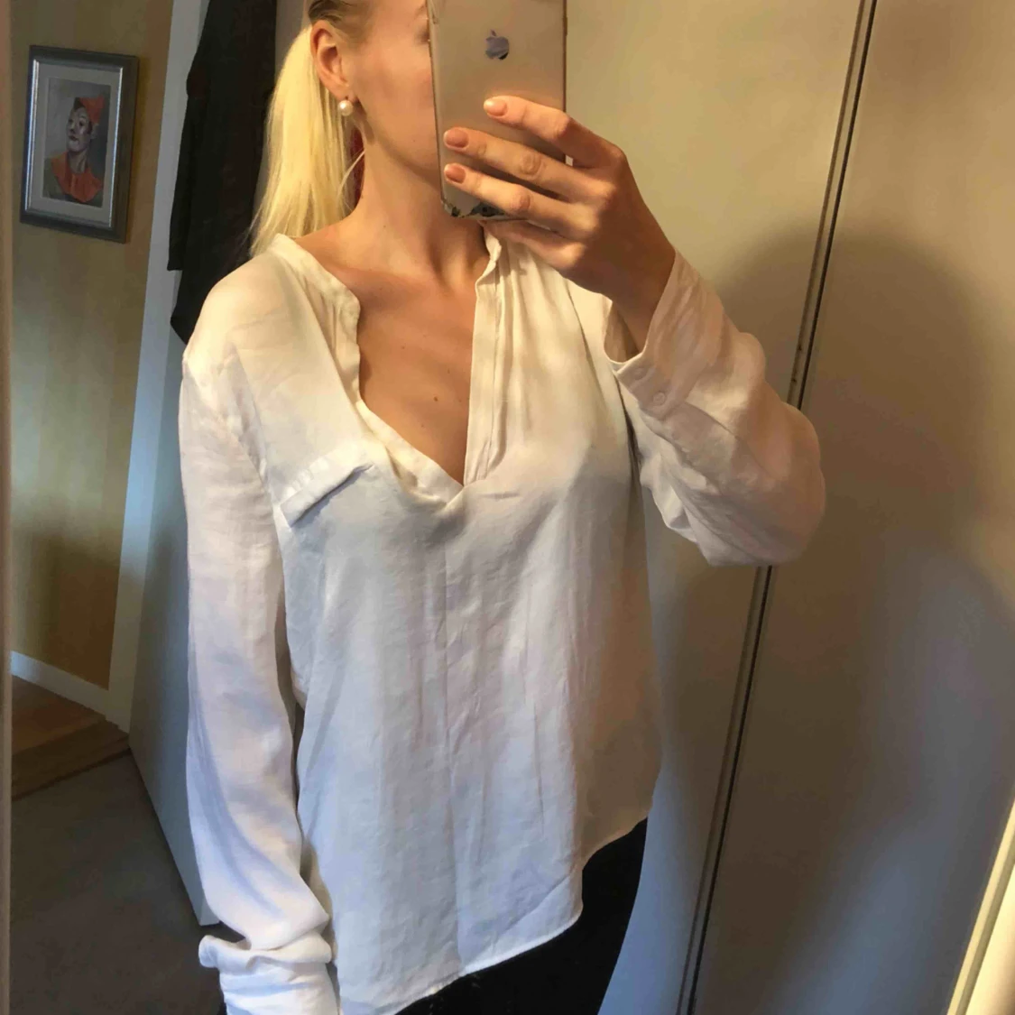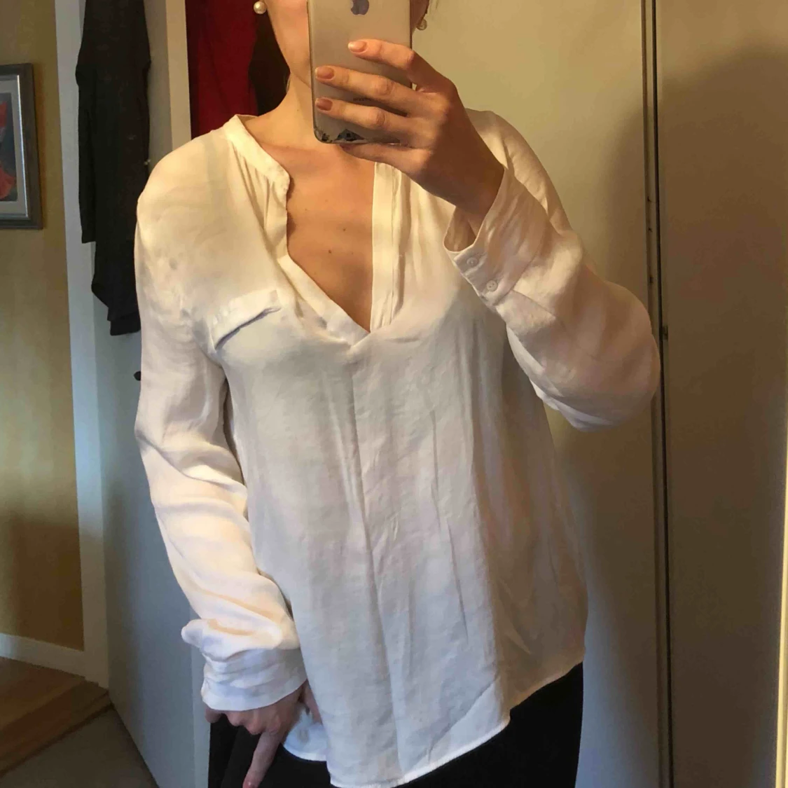Vit skjorta/blus från zara i mjukt satinliknande material! Luftig, klassisk 🌹