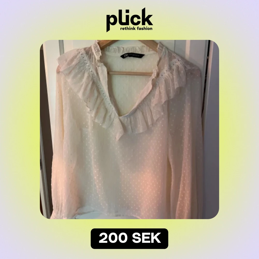 Säljer denna fina vita sommarblusen från Zara, aldrig använd så därför i nyskick, genomskinlig o perfekt nu för sommaren. Nypris 329kr jag säljer för 200kr