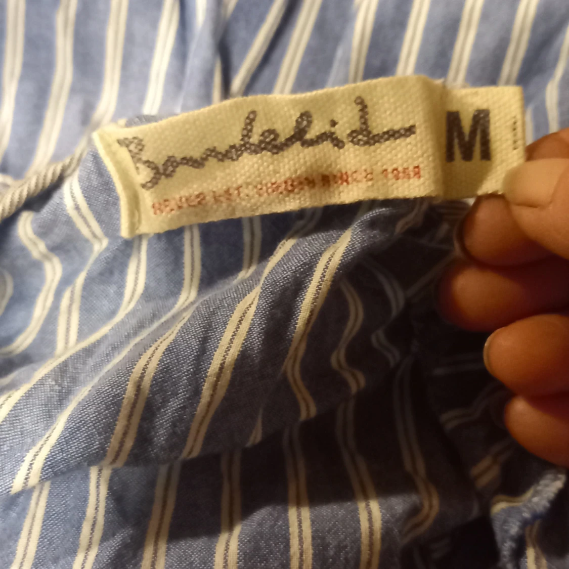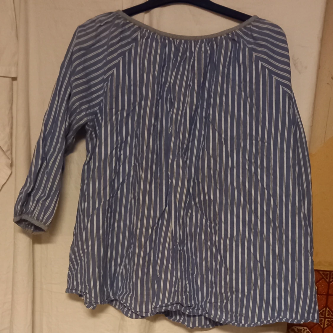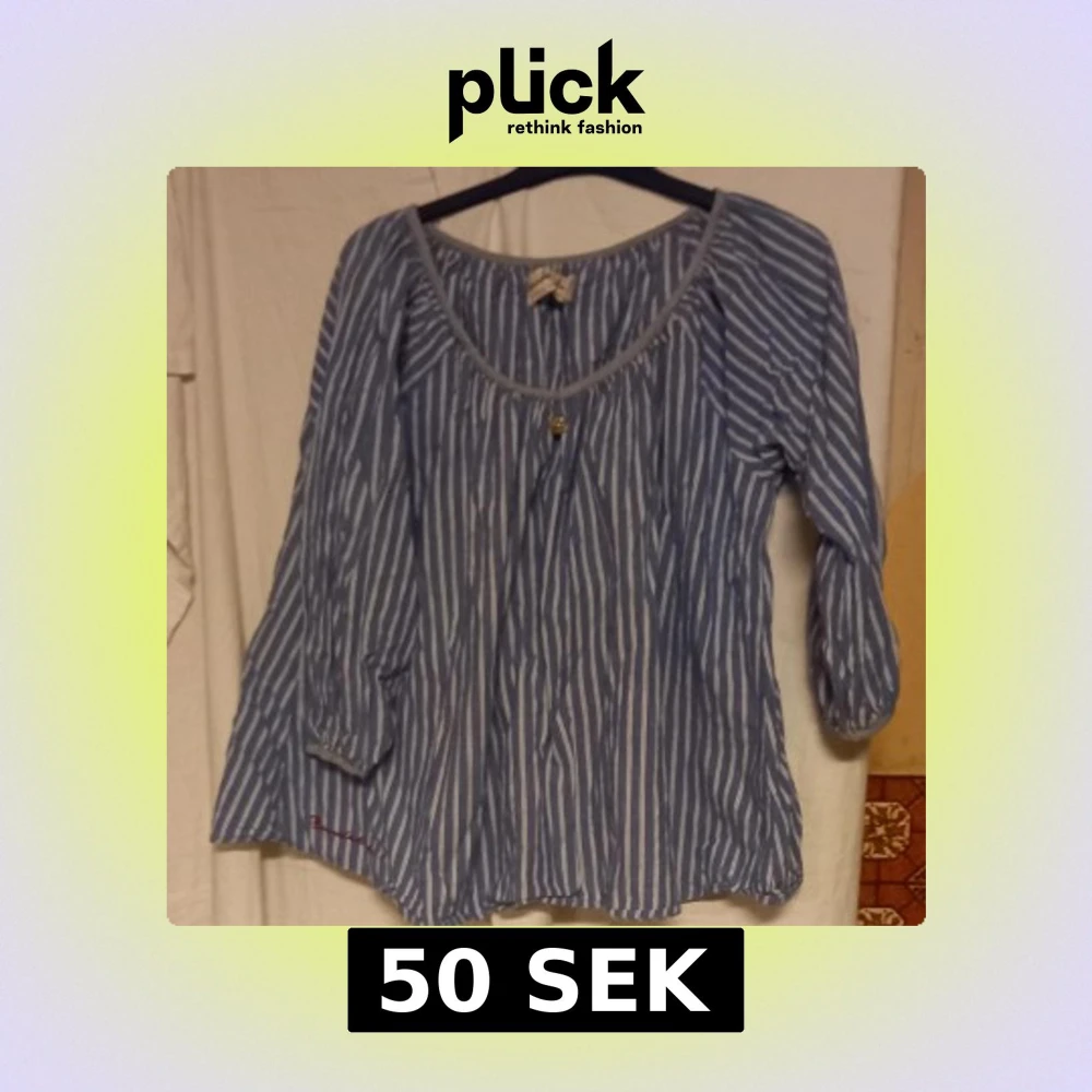 En skön randig blus av märket Bondelid med trekvarts arm. Storlek M