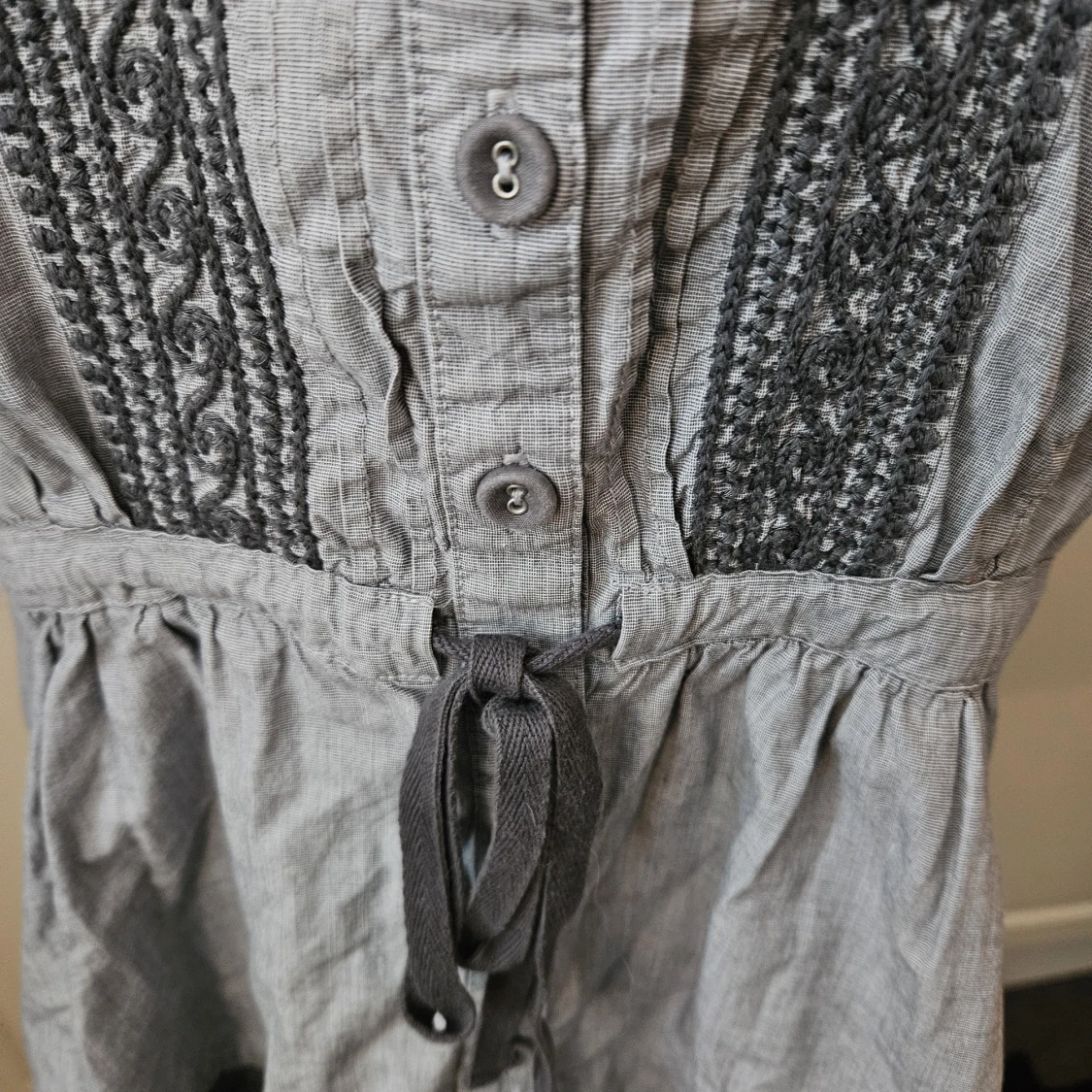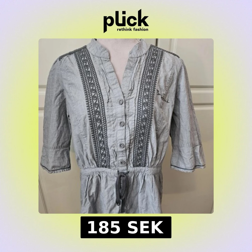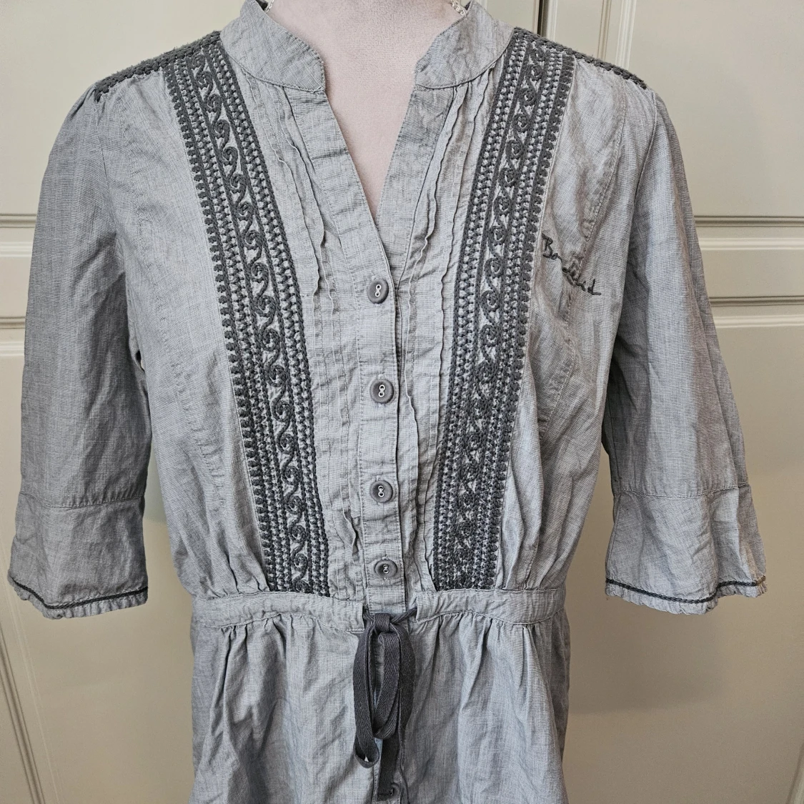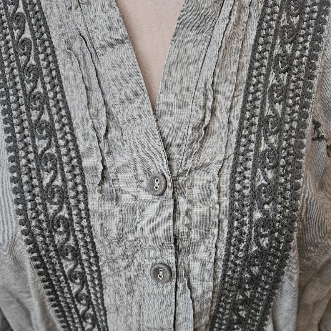 bondelid grå blus nytt knappar snörning trekvartsärm