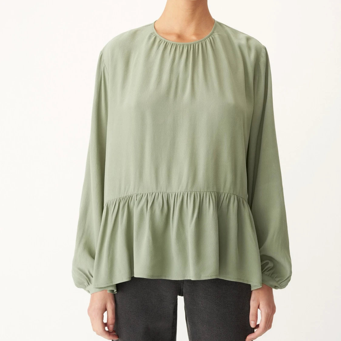 Snygg blus från Carin Wester kakigrön utmärkt skick strl 38