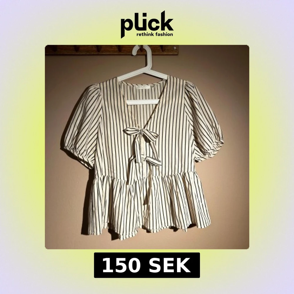 Säljer en söt blus med svartvita ränder och knytband framtill. Enbart använd någon enstaka gång💕