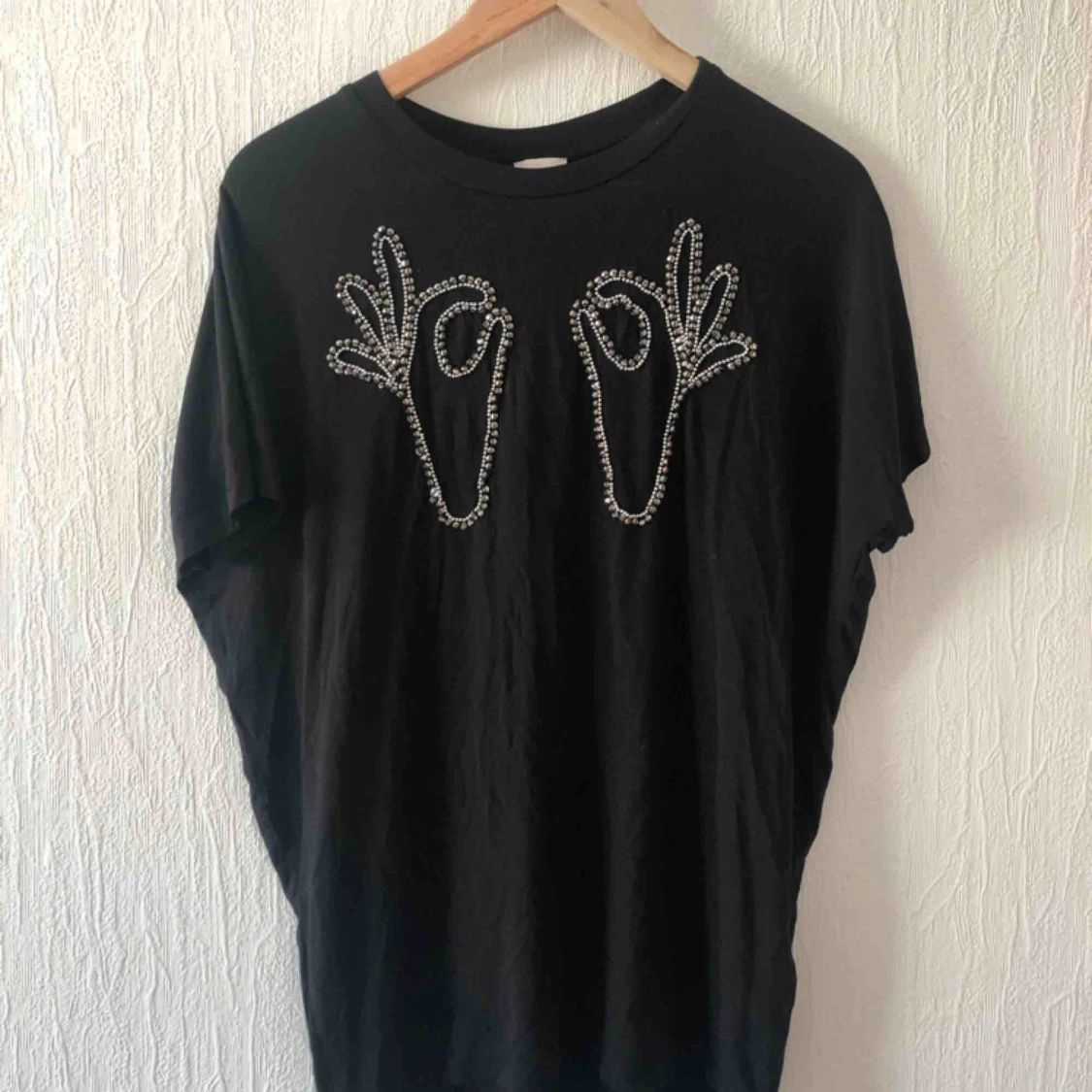 Svart t-shirt med pärl-detaljer. Köpt på Hm conscious collection.