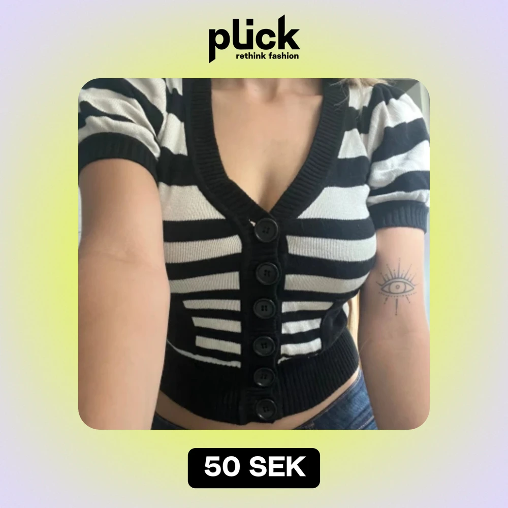Vit randig blus med puffärmar. Frakt tillkommer!