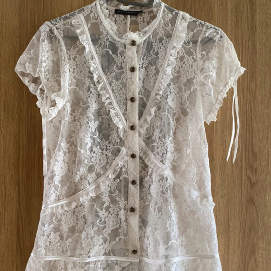 Vit spetsblus från Watcher i storlek L, men passar S-L betoende på hur man vill att den ska sitta.