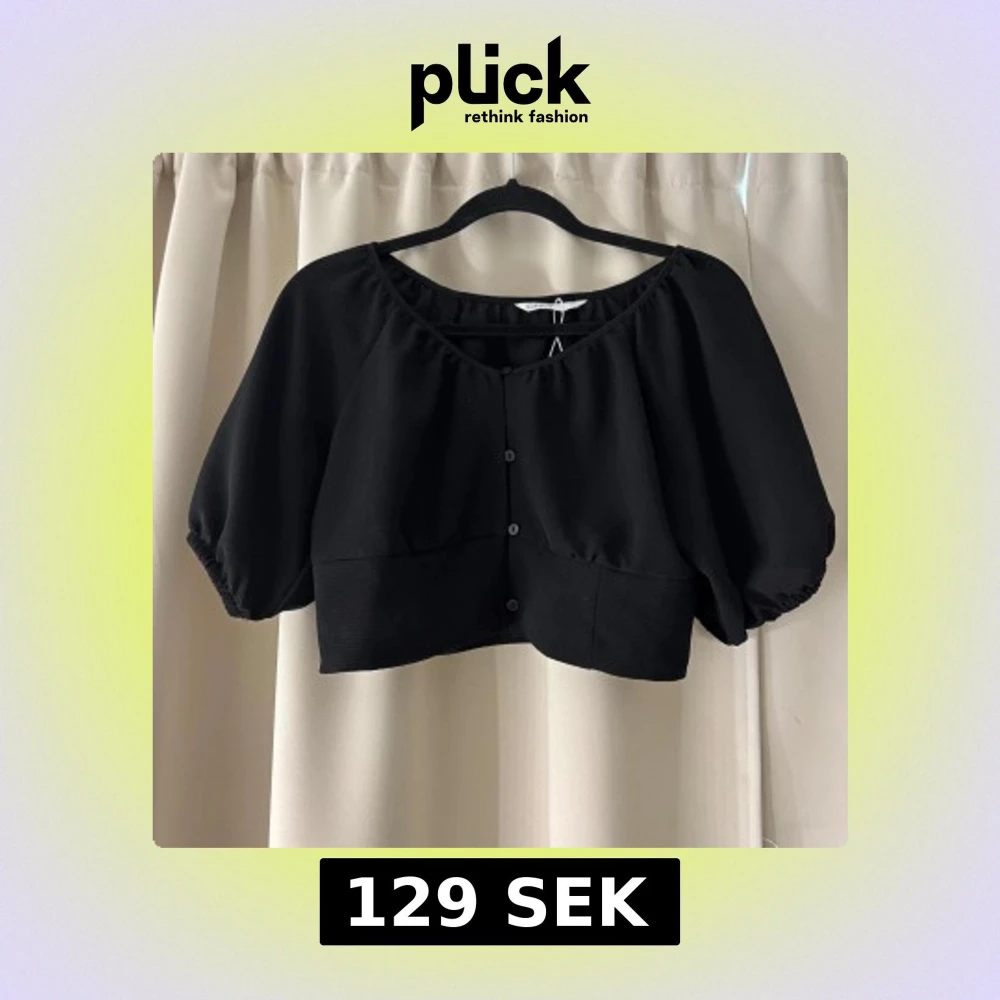 Supersnygg svart croppad blus med puffiga korta ärmar och knappar framtill. Perfekt för allt. Om fler bilder önskas eller vid frågor kontakta mig💋