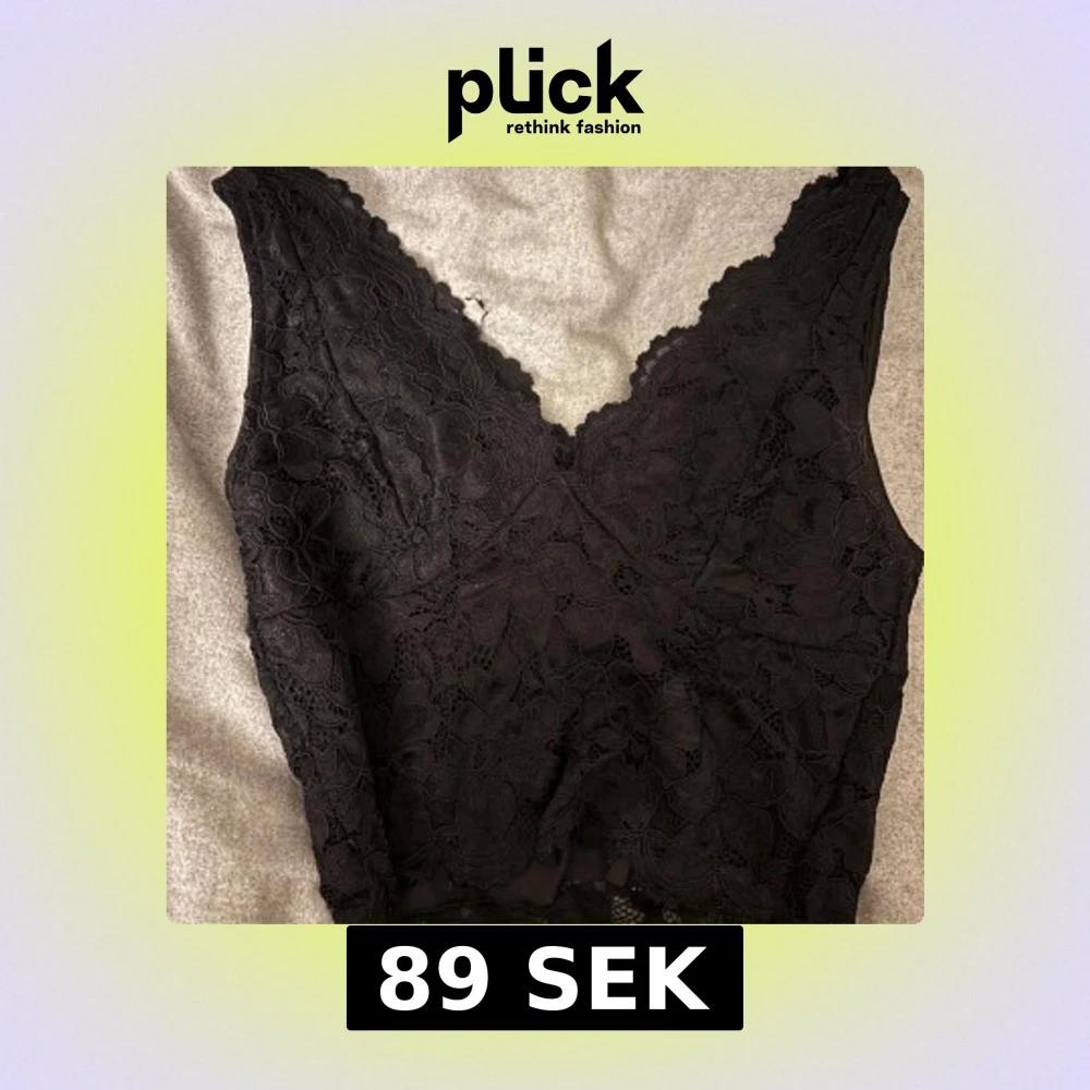 SĂ€ljer ett elegant svart spetslinne med v-ringad design.đđ„°